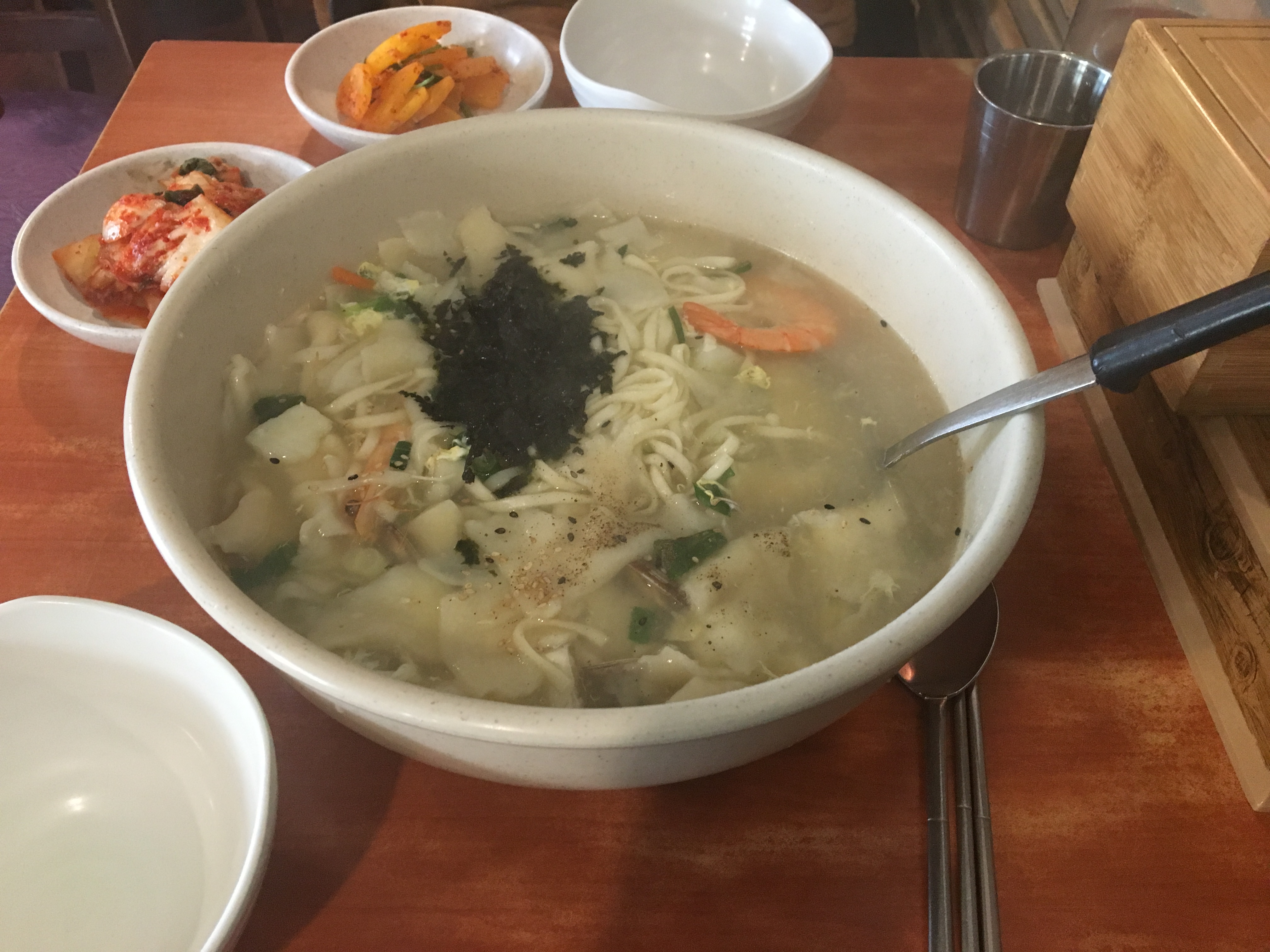 국물을 살짝 짭짤한 국물에 수제비와와 면이 같이 있어서 먹는 재미도 있습니다.
