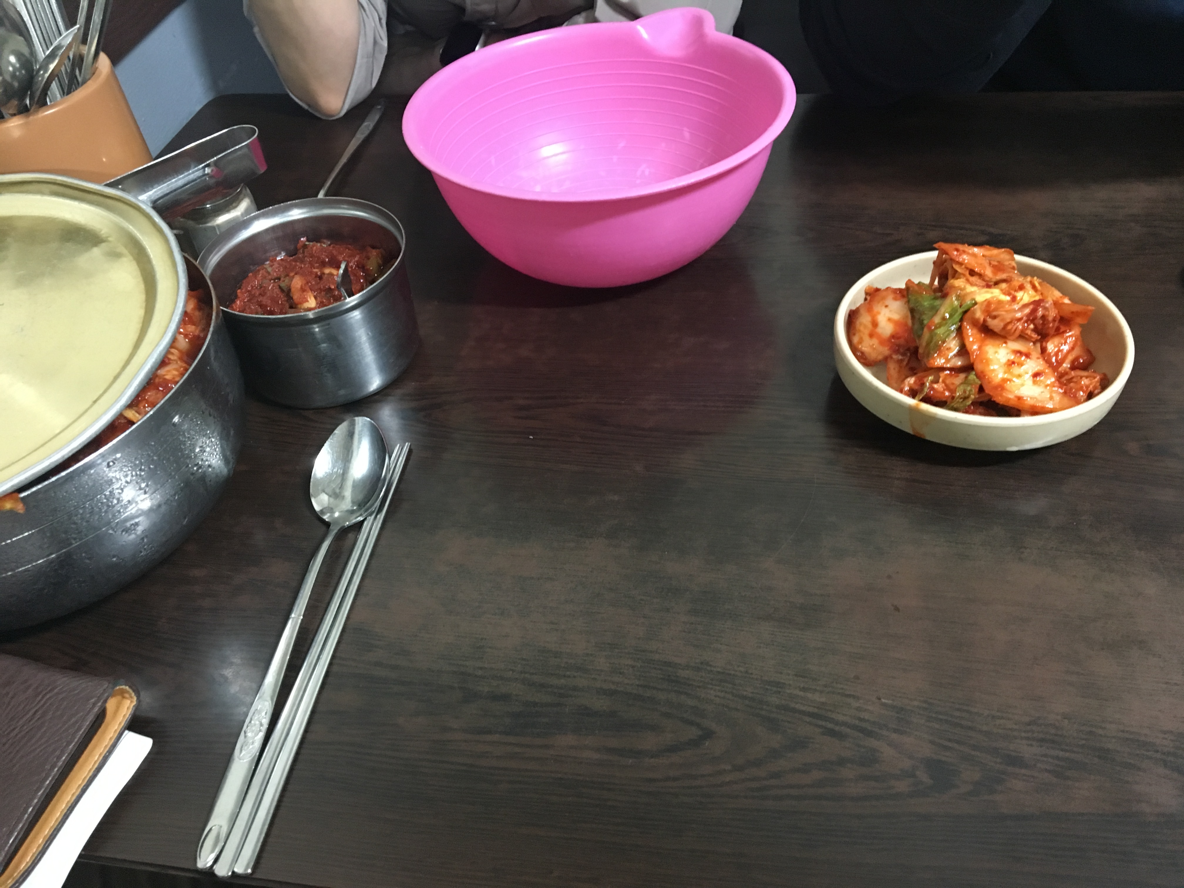 저 분홍 바가지는 해물칼국수의 껍질을 버리는 용도입니다. ㅋㅋㅋ