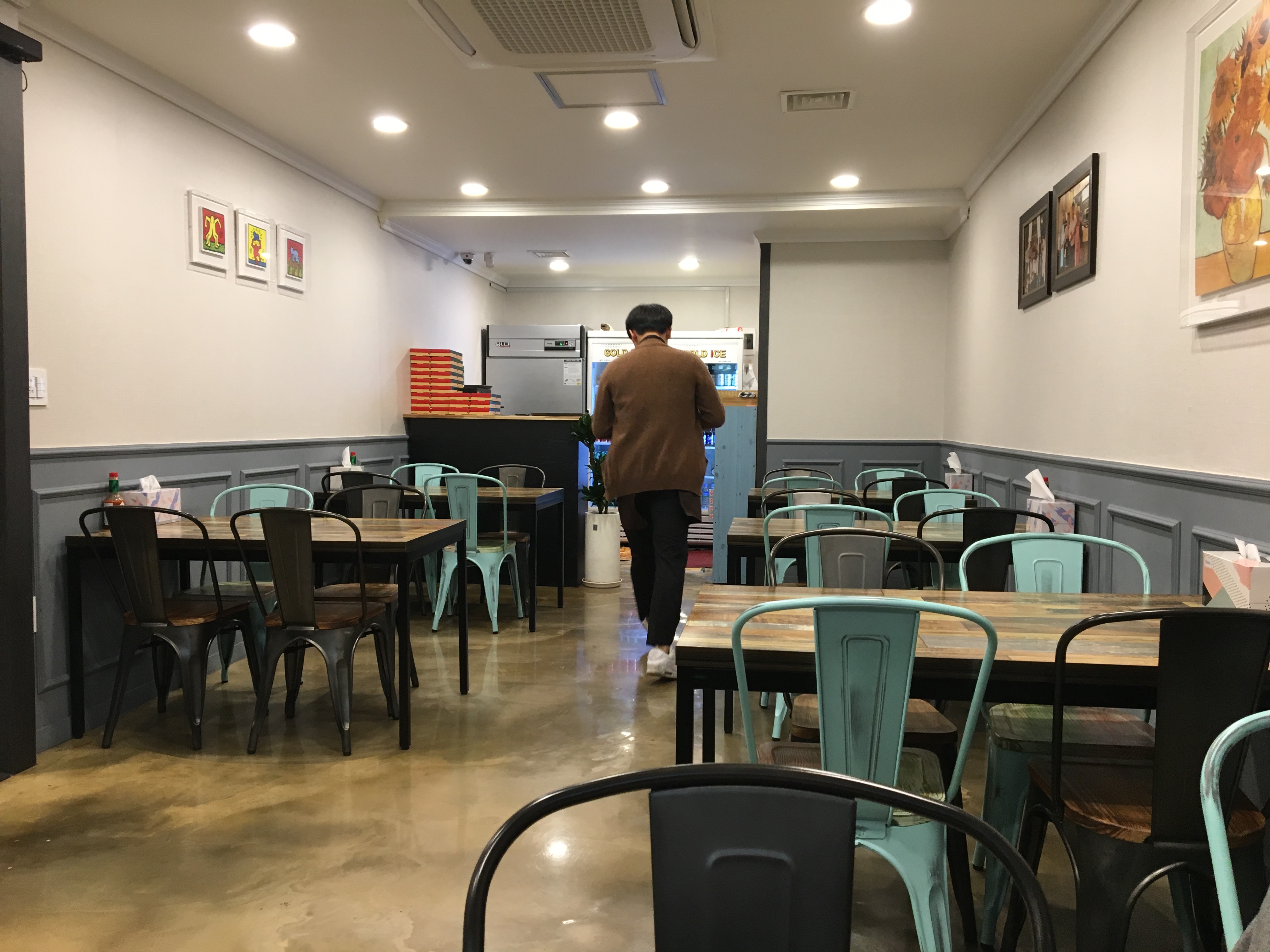 피자를 만들고 주문하던 공간이 커져서 이런 공간이 새로 생긴 듯한 느낌입니다.