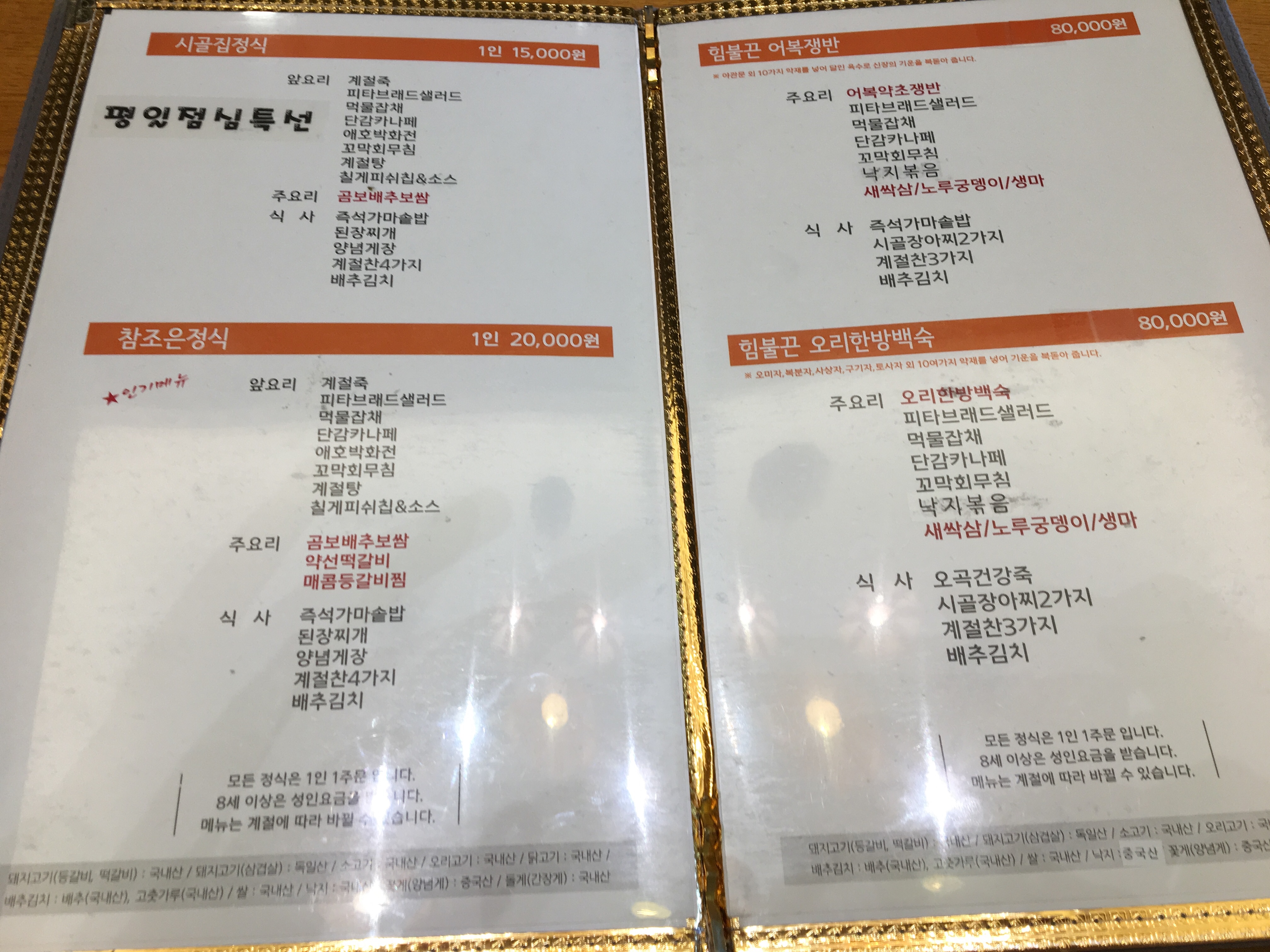 참조은시골집의 메뉴는 보통 정식으로 많이들 시켜서 드시는데 저희는 참조은정식으로 먹었습니다.