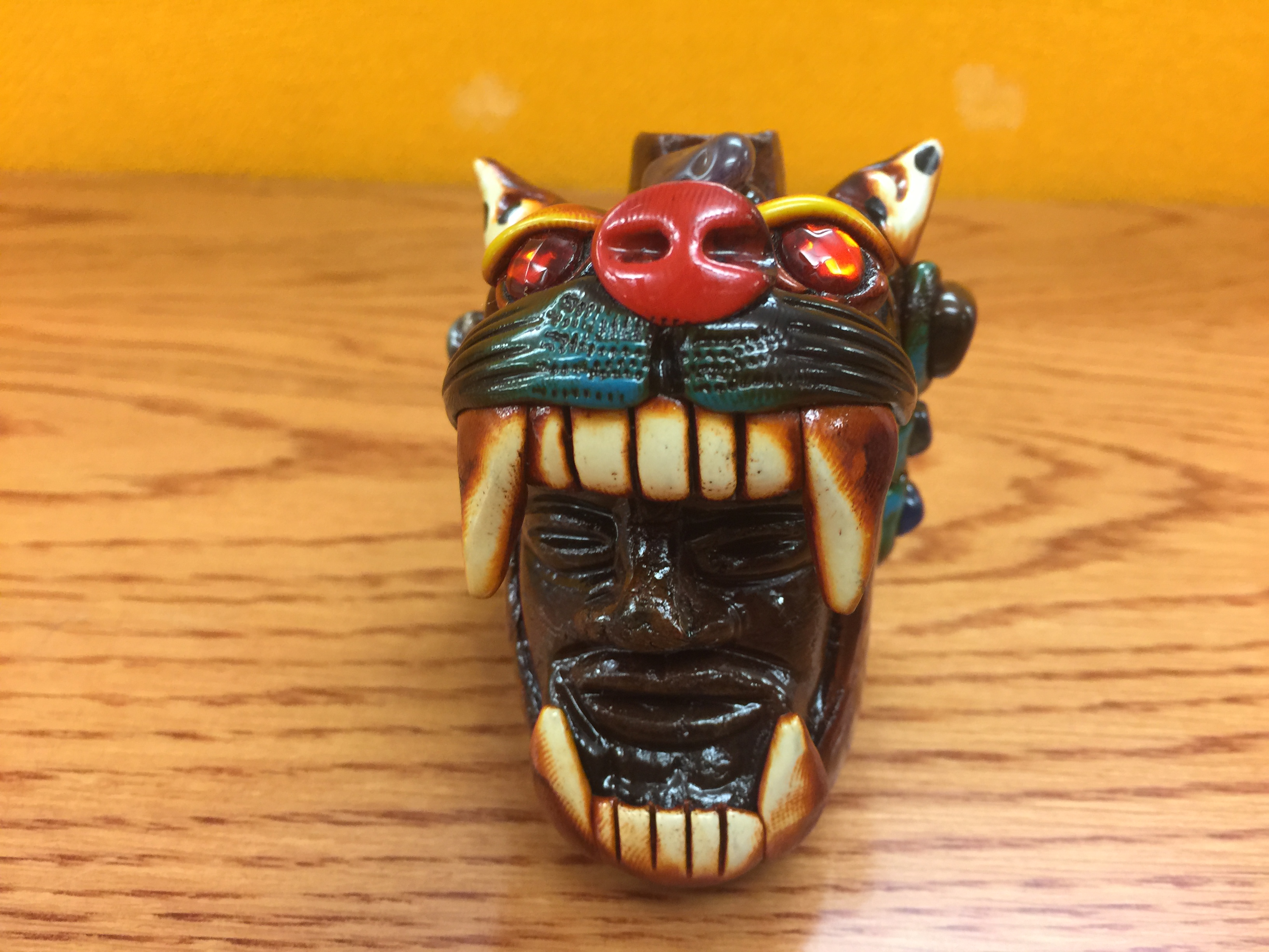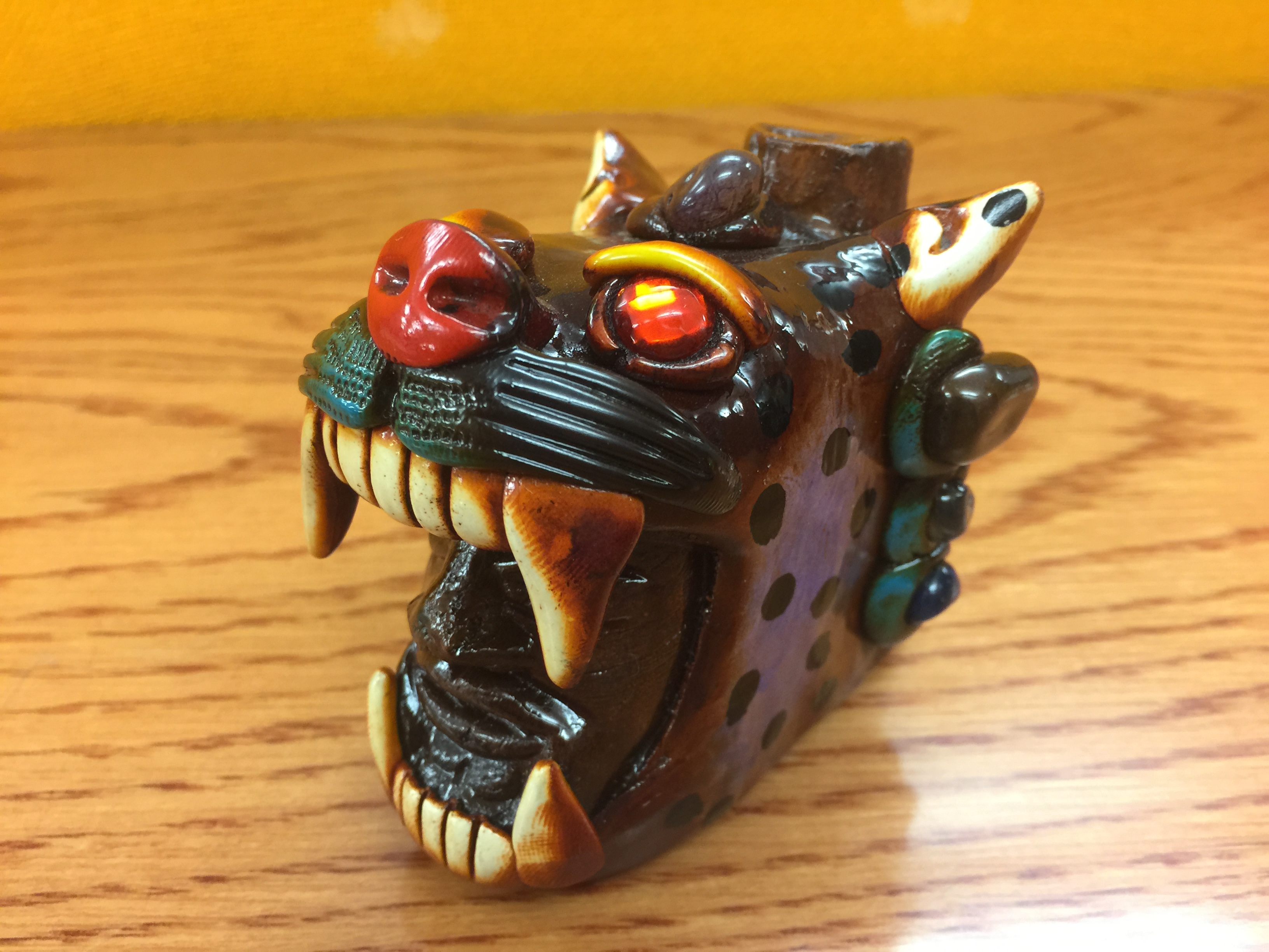 재규어 머리안에는 사람의 얼굴이 조각되어 있고 화려한 모습을 하고 있습니다. 섬세한 맛은 떨어지죠 ....
