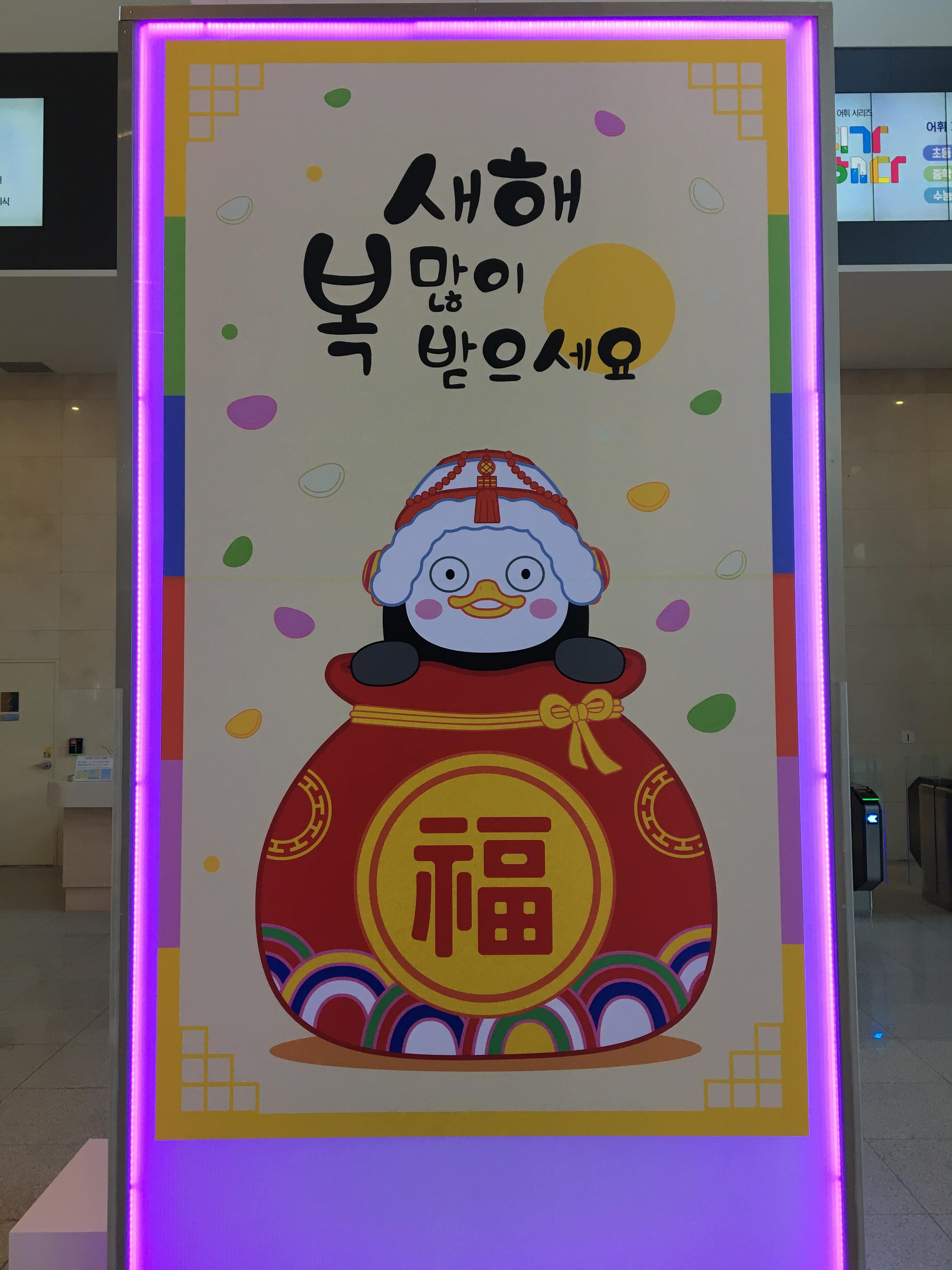 좀 있으면 구정이라 그런지 기둥에는 새해복많이 받으세요라고 꾸며져 있습니다.