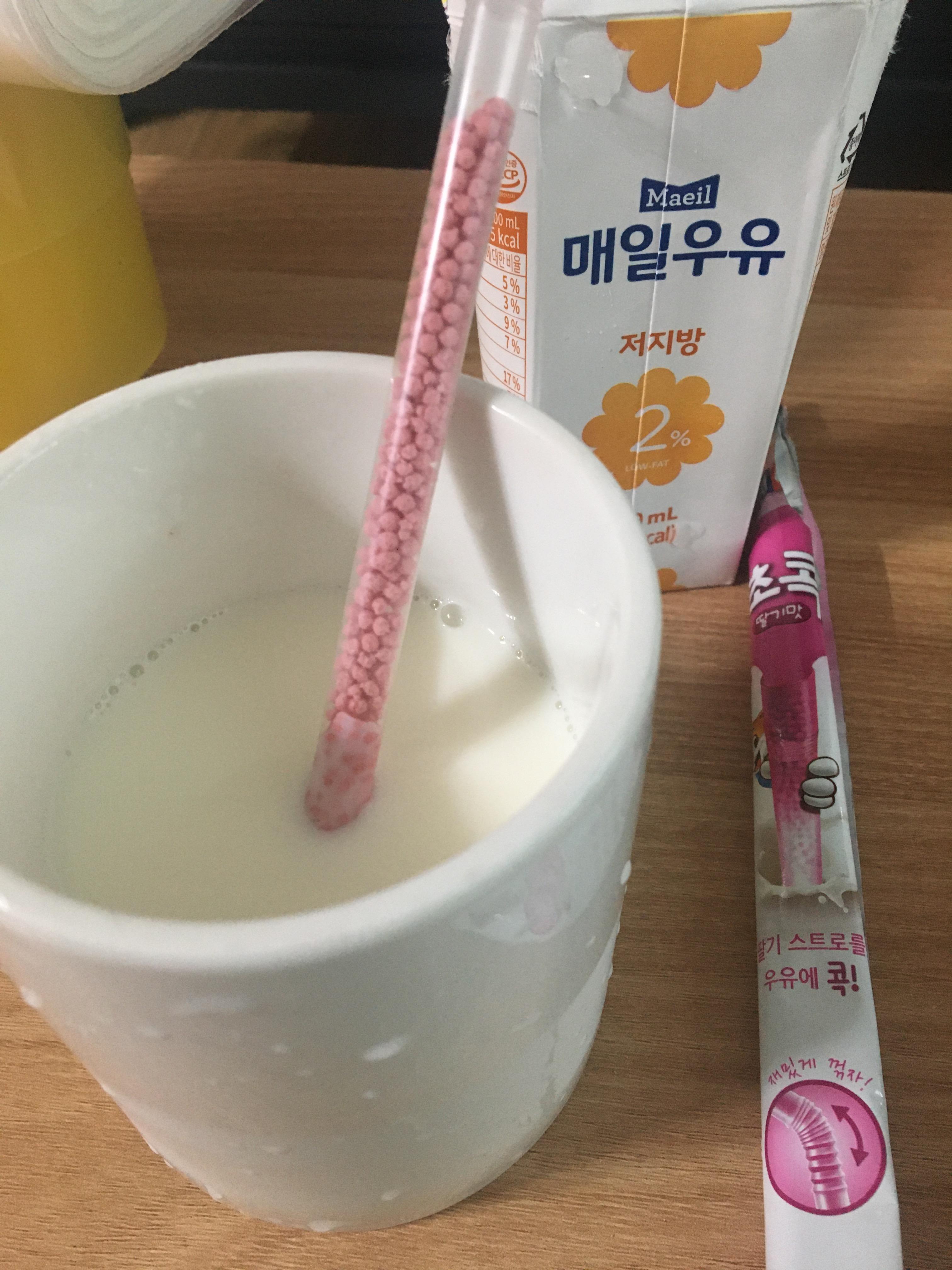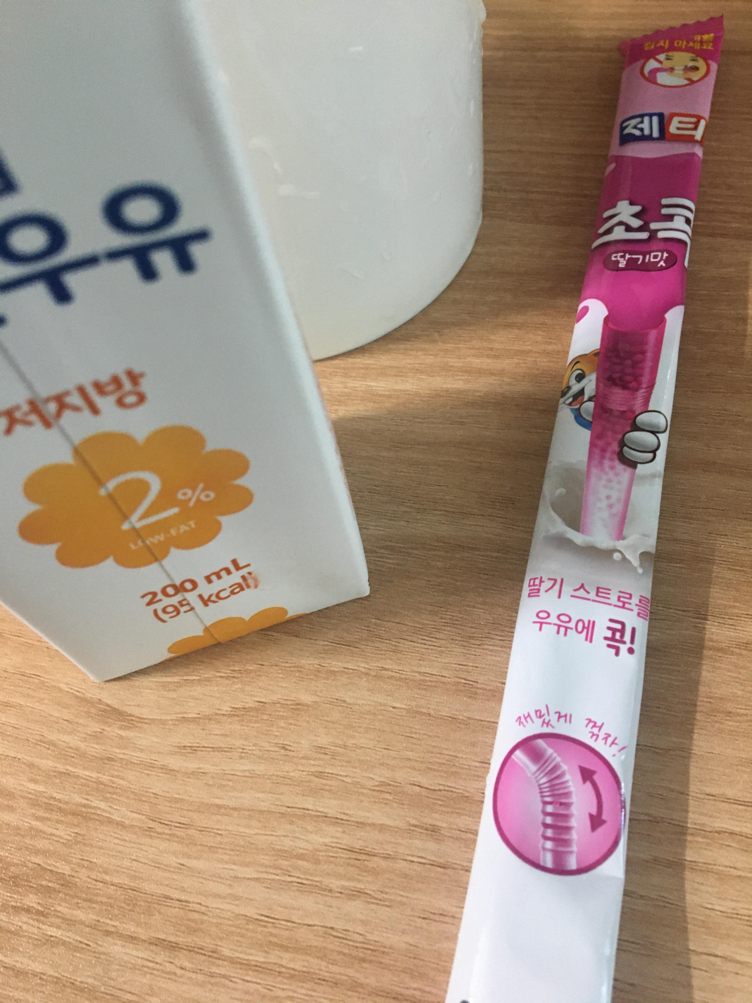 제티 초코 딸기맛 빨대 ... 요새는 흰우유를 맛있게 먹는 방법이 너무 좋네요.