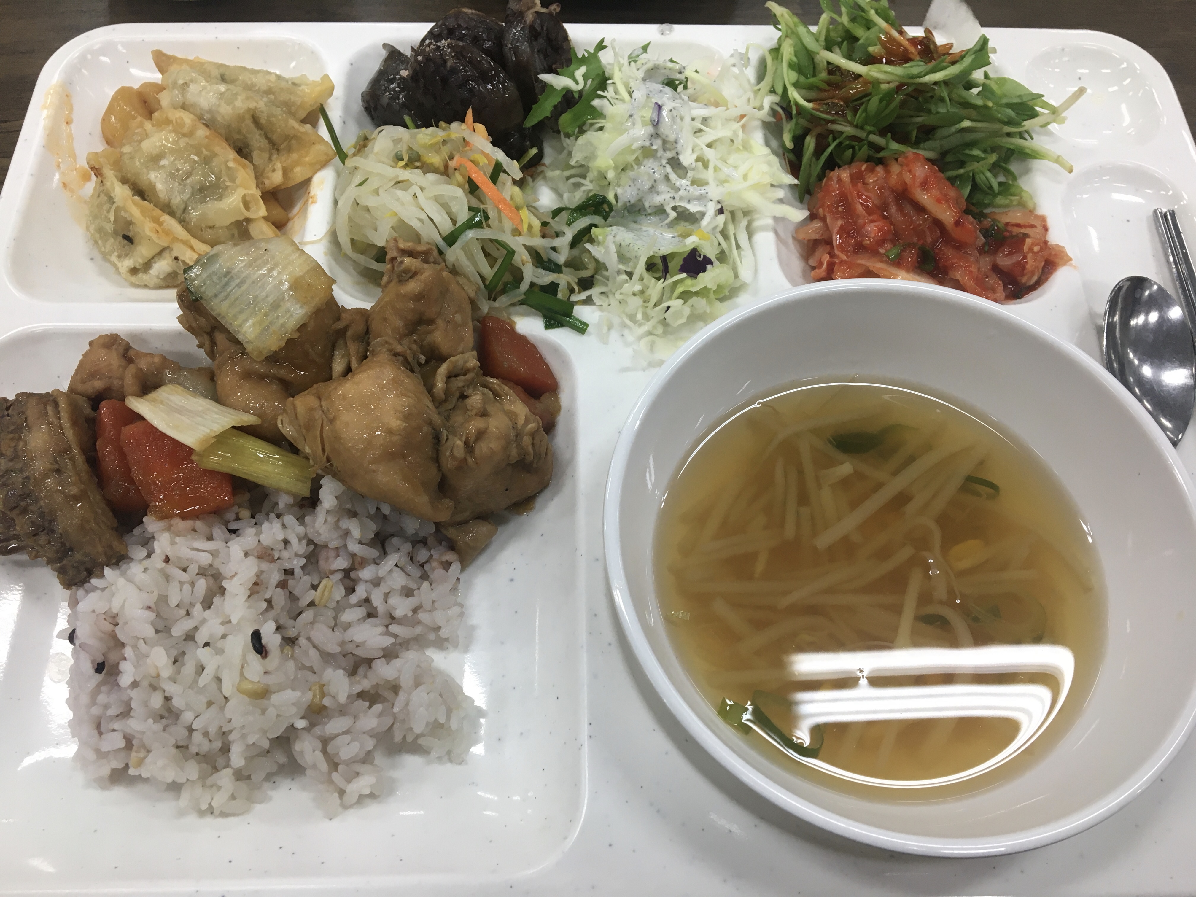 야채 반찬은 4가지하고 만두튀김하고 순대와 찜닭의 조합은 좀 이상하지만 뭐 그게 중요한가요. 다양하게 먹는게 좋죠.