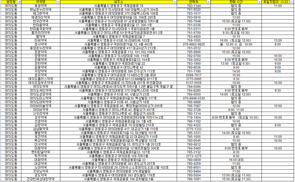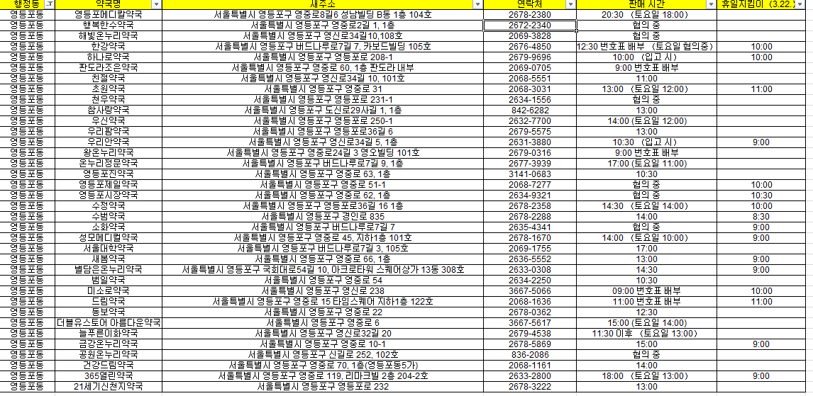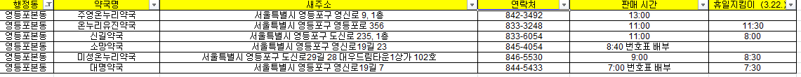 서울특별시 영등포구 영등포동 에서 공적마스크 판매 약국의 주소, 연락처, 판매시간