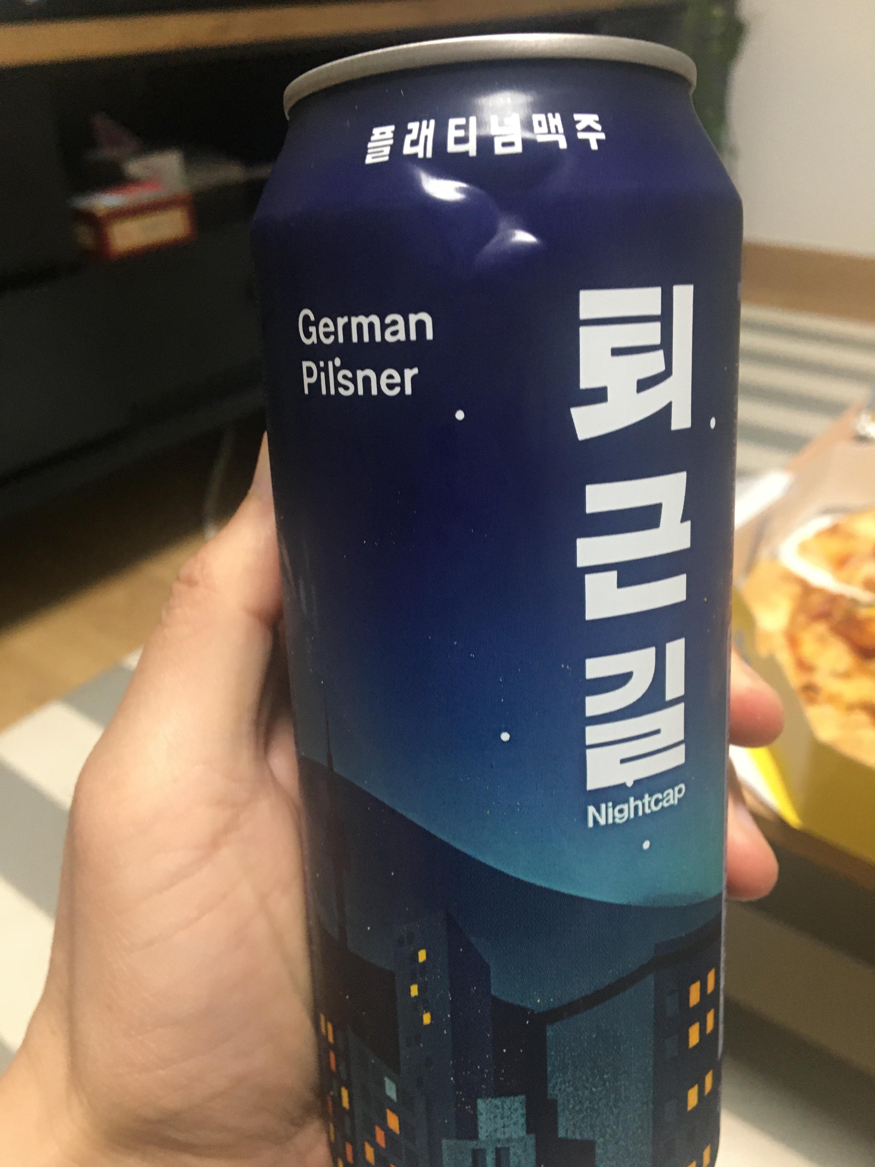 퇴근길 필스너는 국내 수제맥주 1위 업체인 플라티넘크래프트맥주가 제조한 독일 필스너 스타일의 수제맥주입니다.
