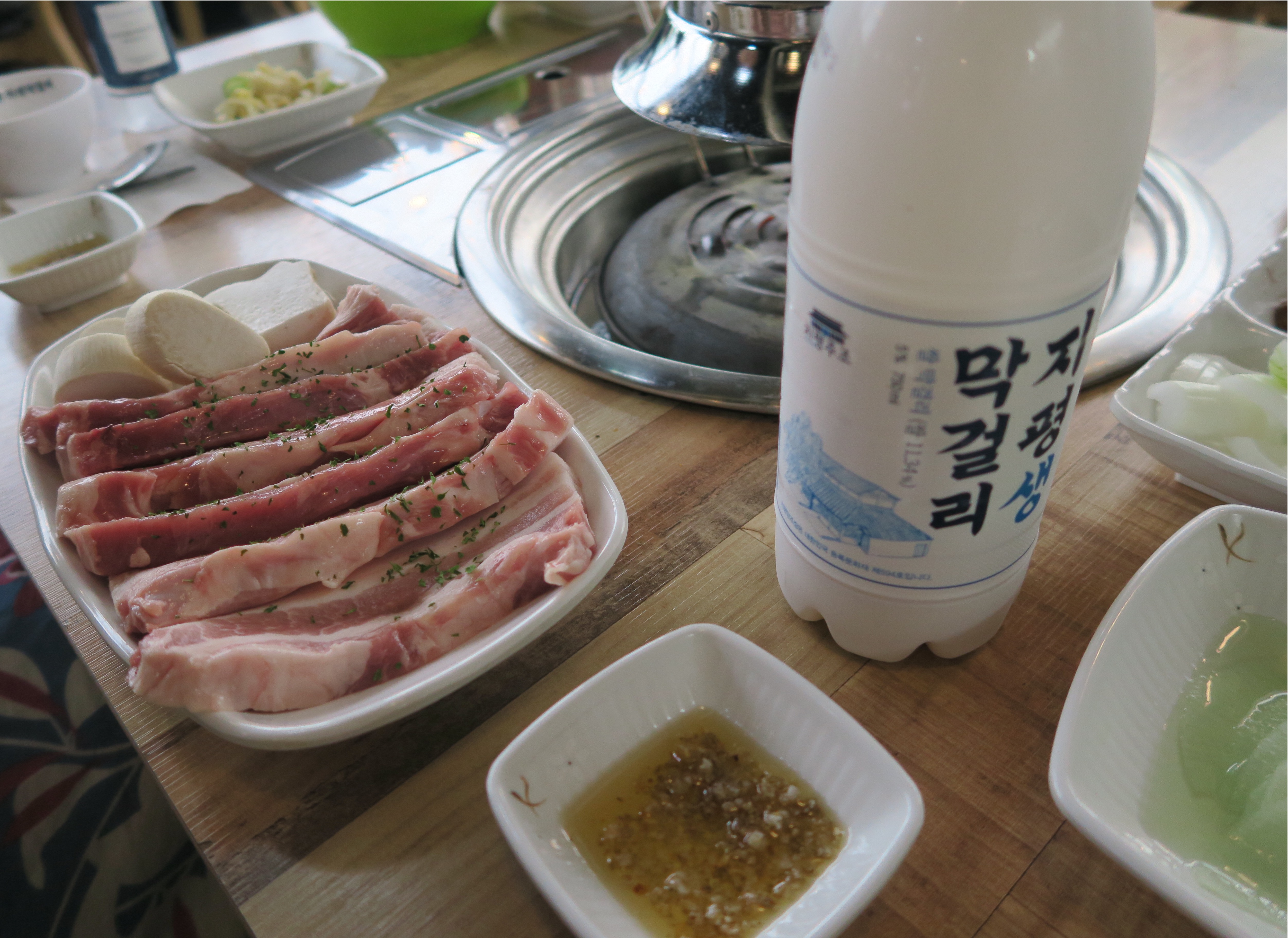 생삼겹살 3인분하고 오랜만에 지평막걸리를 시켰는데 저는 운전해야되서 입맛만 다셨네요.