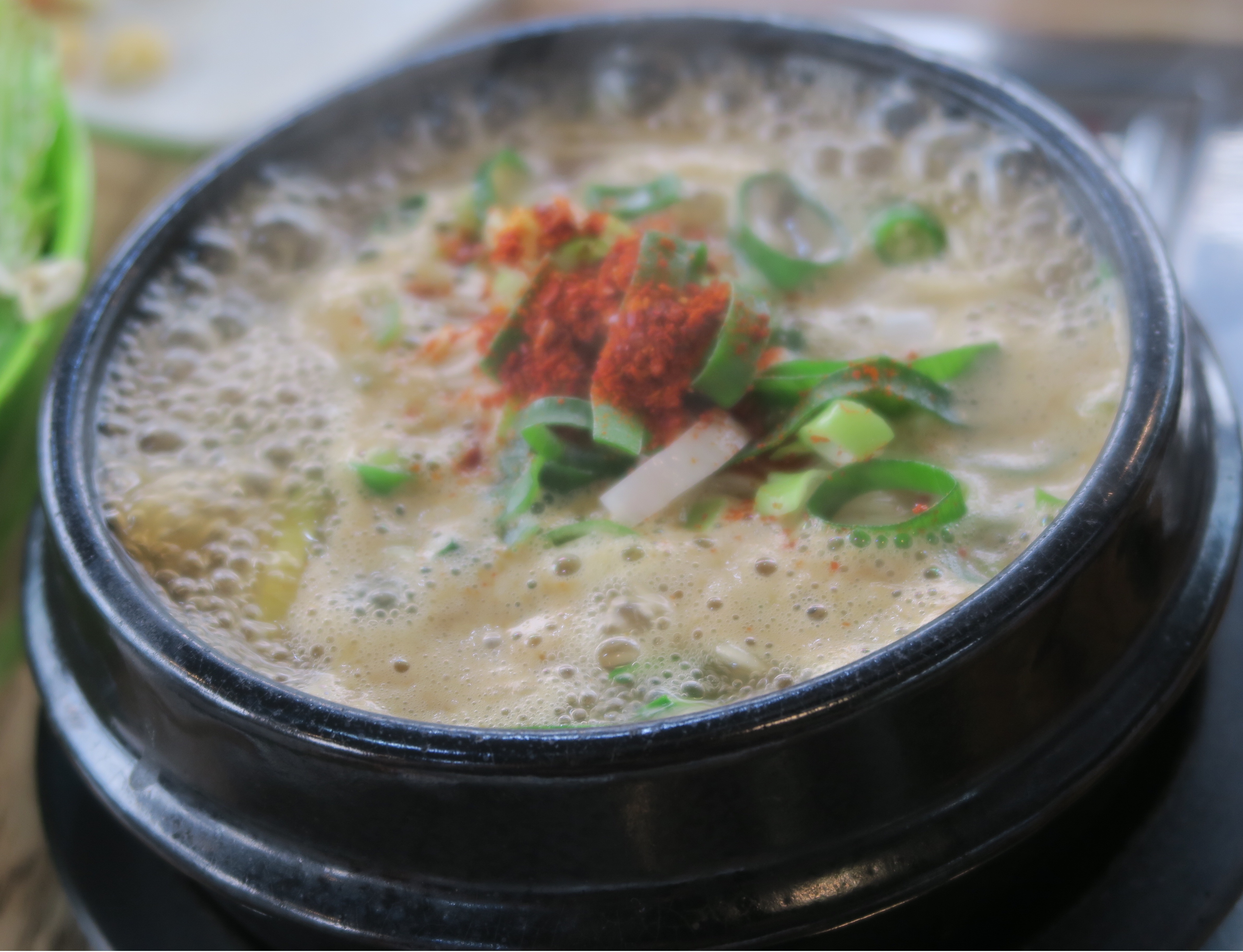 파무침하고 콩나물무침 그리고 마요네즈 마카로니샐러드가 나옵니다. 밑반찬하고 쌈채소 등은 셀프바가 있어서 필요하시면 가져다 드시면 됩니다.