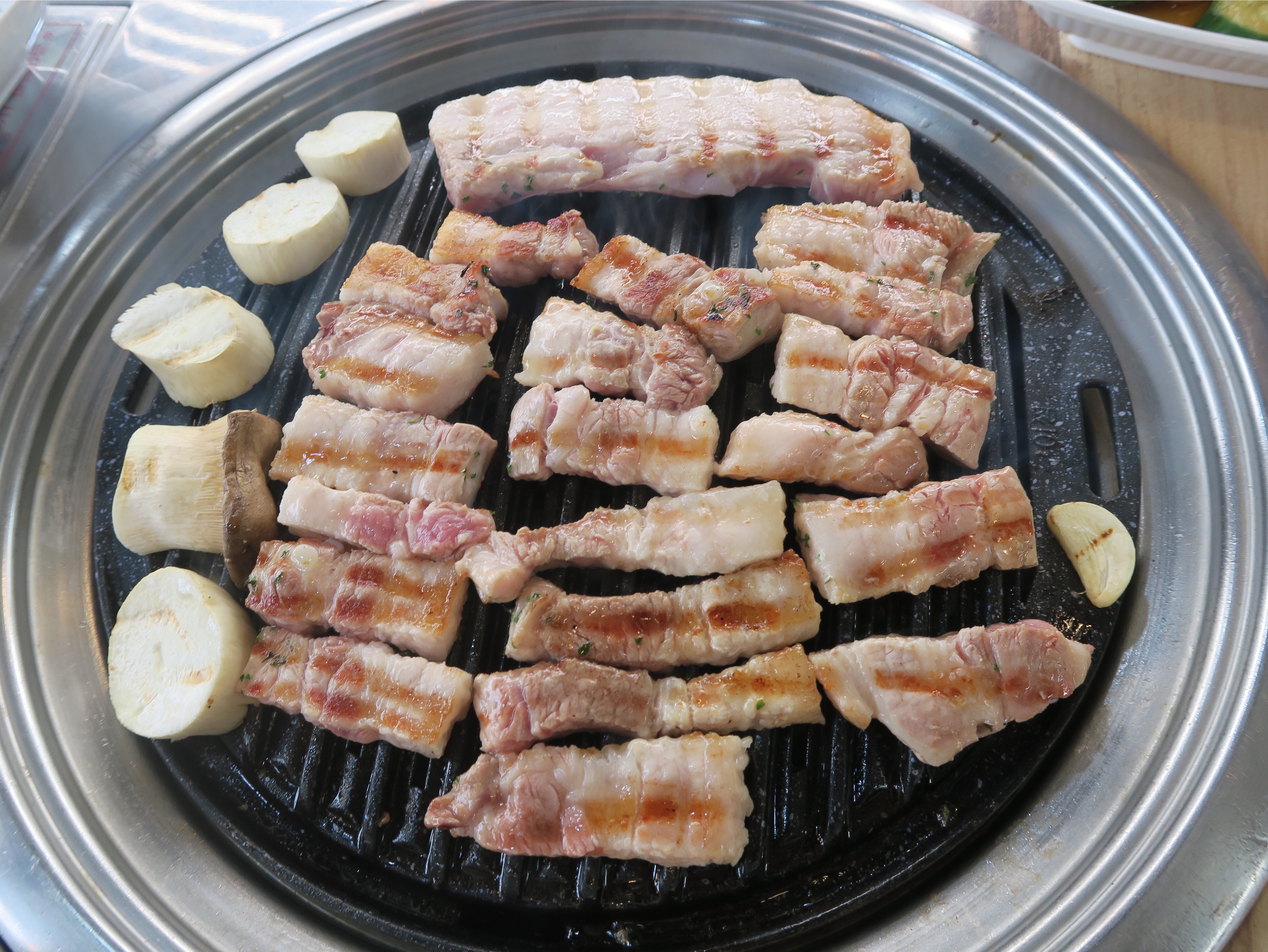 생삼겹살을 먹고나서 양념삼겹살을 시켰습니다. 돼지갈비도 있었는데 배불러서 차마 돼지갈비까지는 못 먹어봐서 좀 아쉽네요.