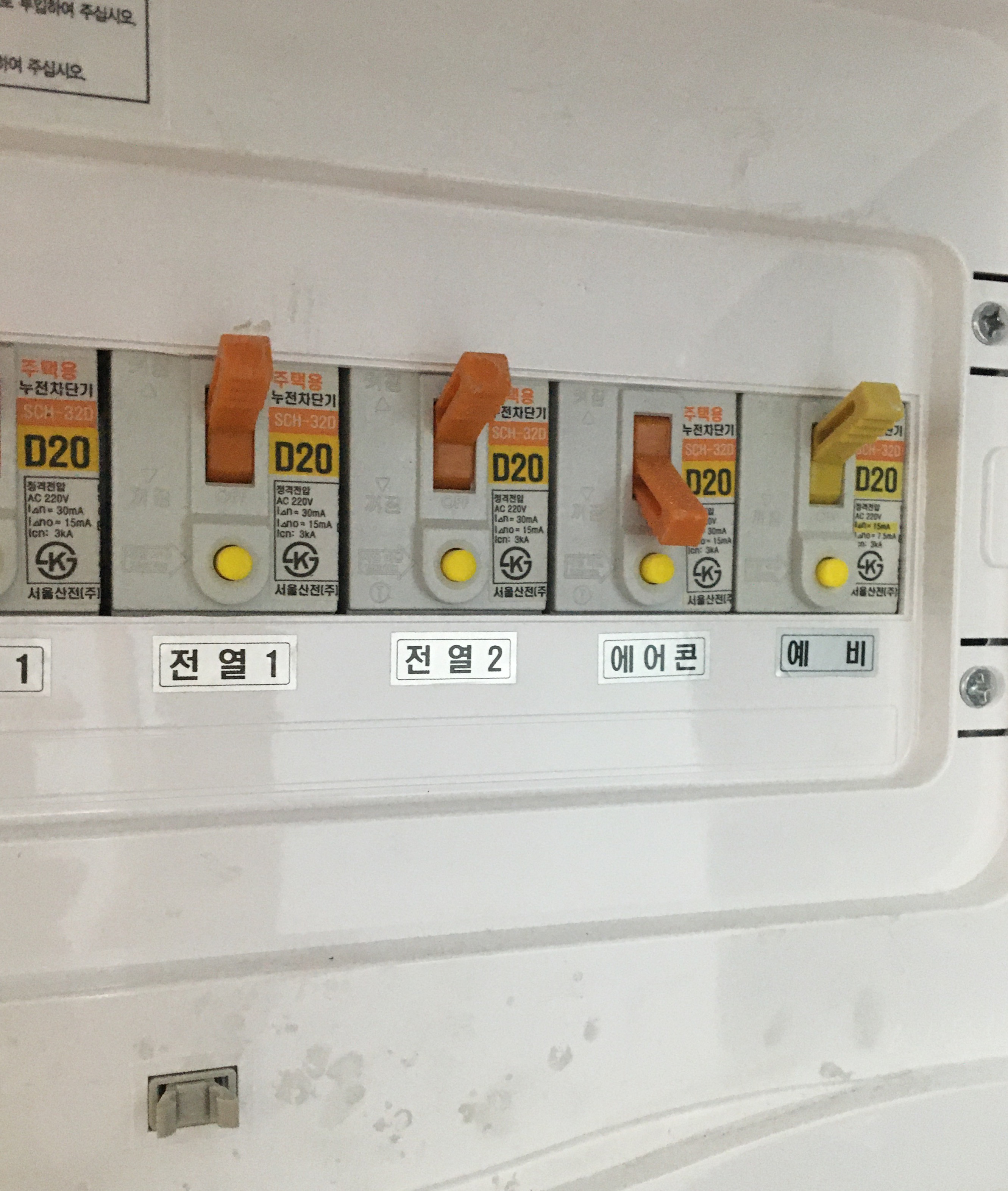 작업전에 두꺼집에서 에어컨의 전원 차단기를 꺼줍니다.