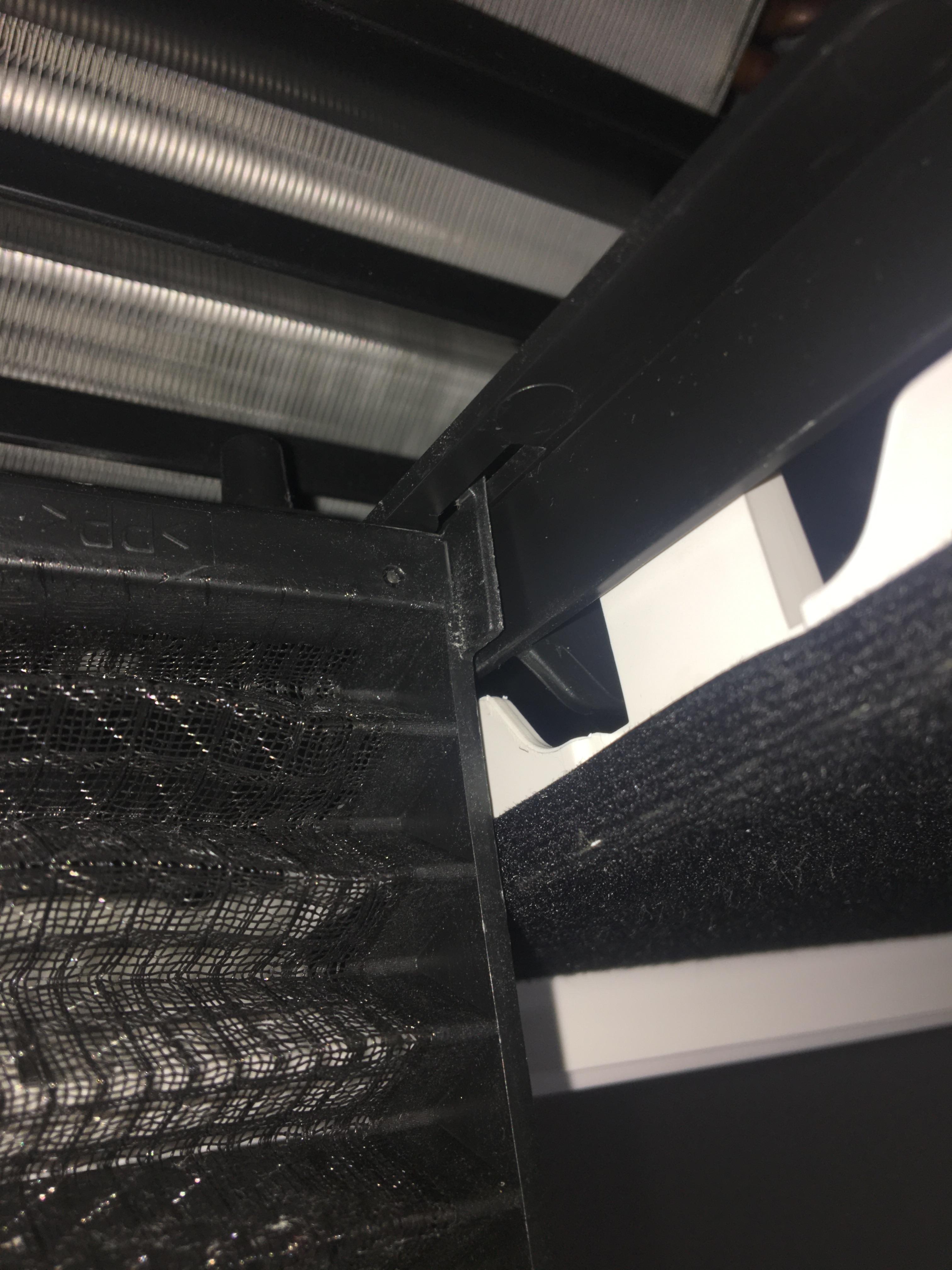 이제 먼지를 막아주는 필터는 작은 손잡이가 2개 보이실텐데 그걸 아래로 당겨주시면 사진과 같은 상태가 되구요.