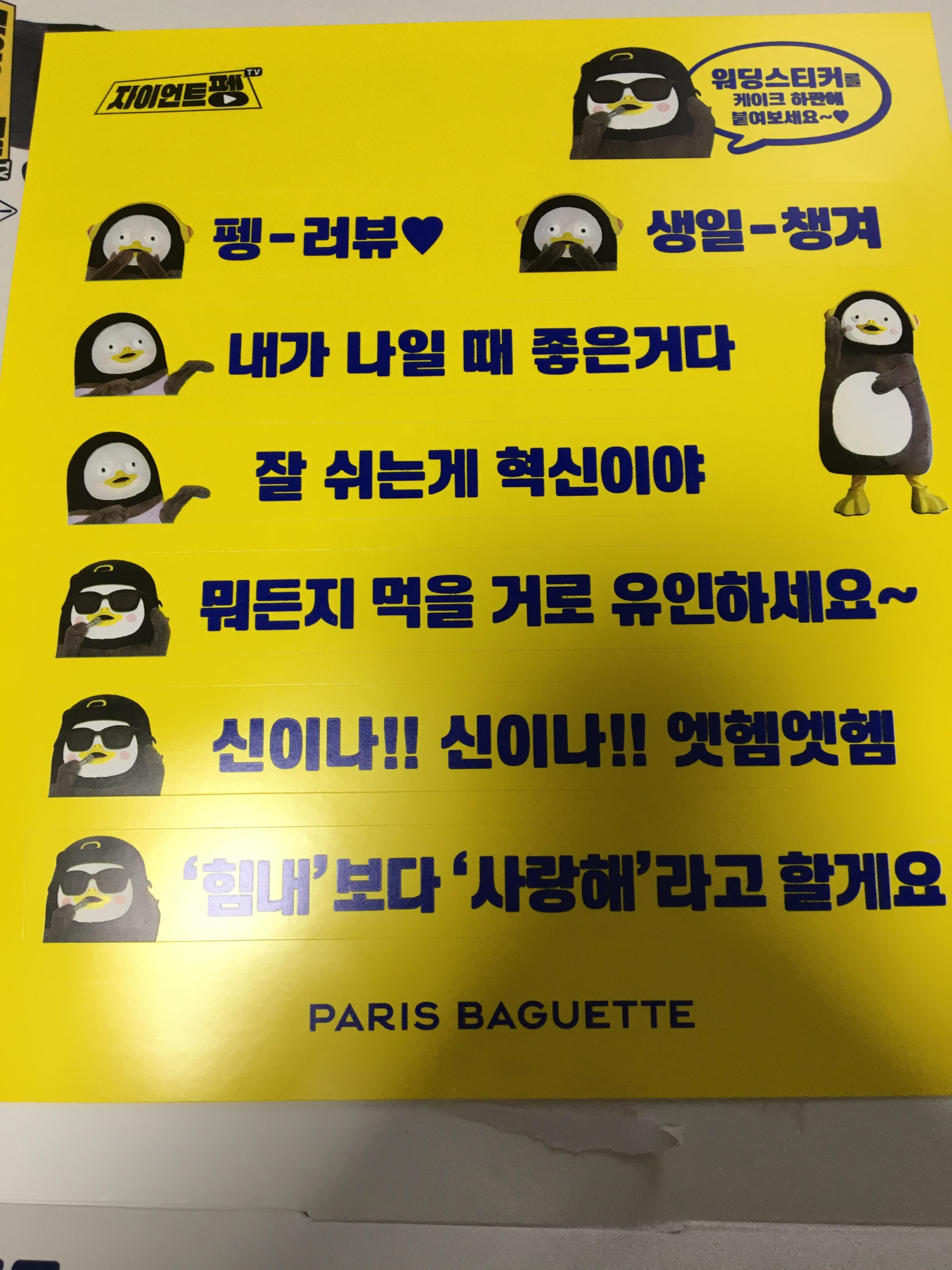 펭수 케익을 사시면 워딩스티커가 들어있습니다.