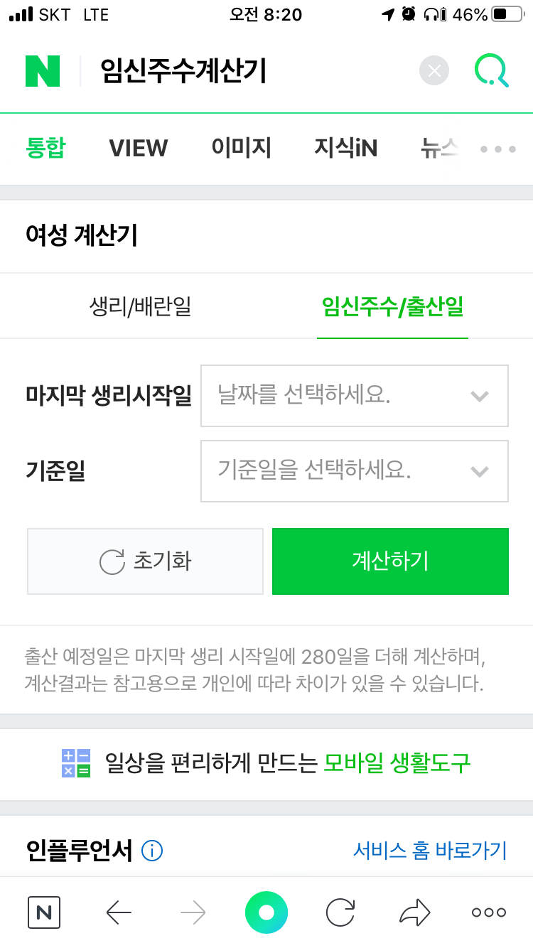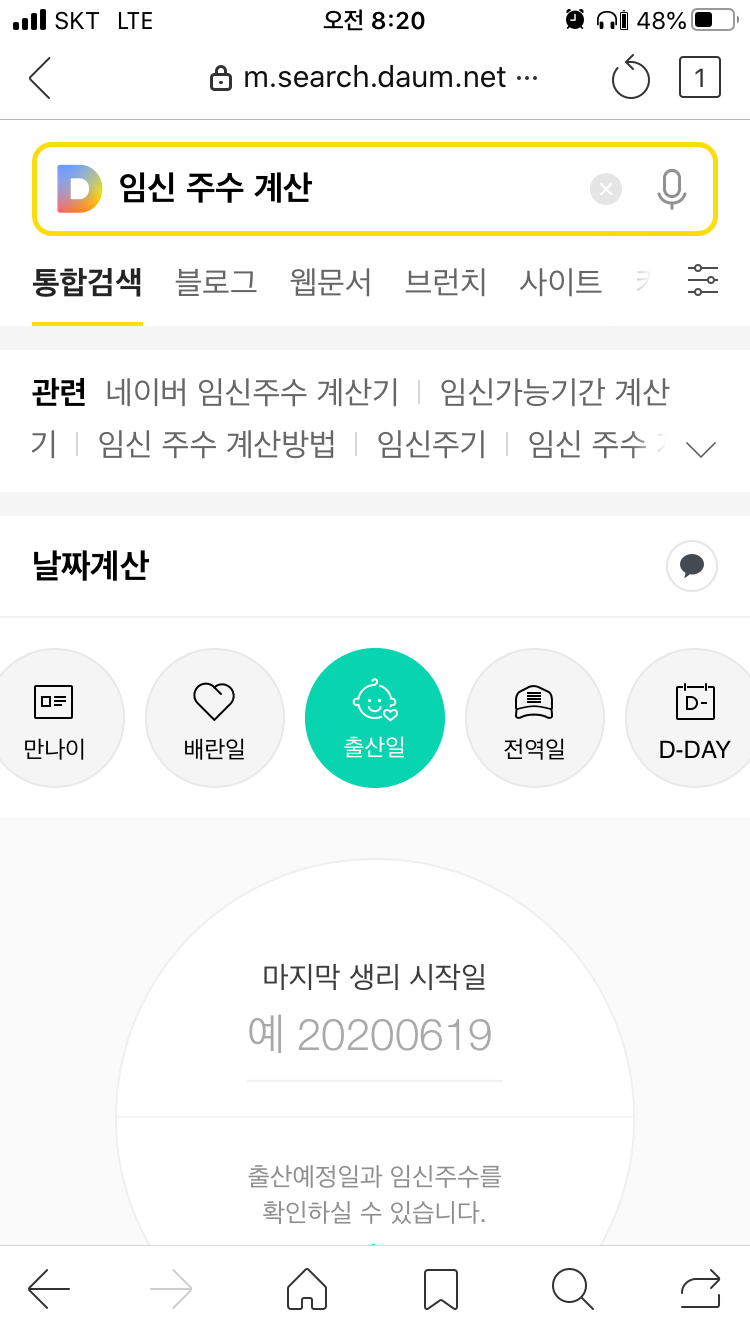 4. 마지막으로 네이버, 다음 같은 포털싸이트에서 '임신주수계산' 으로 검색하고 사용하는 방법이 있습니다.