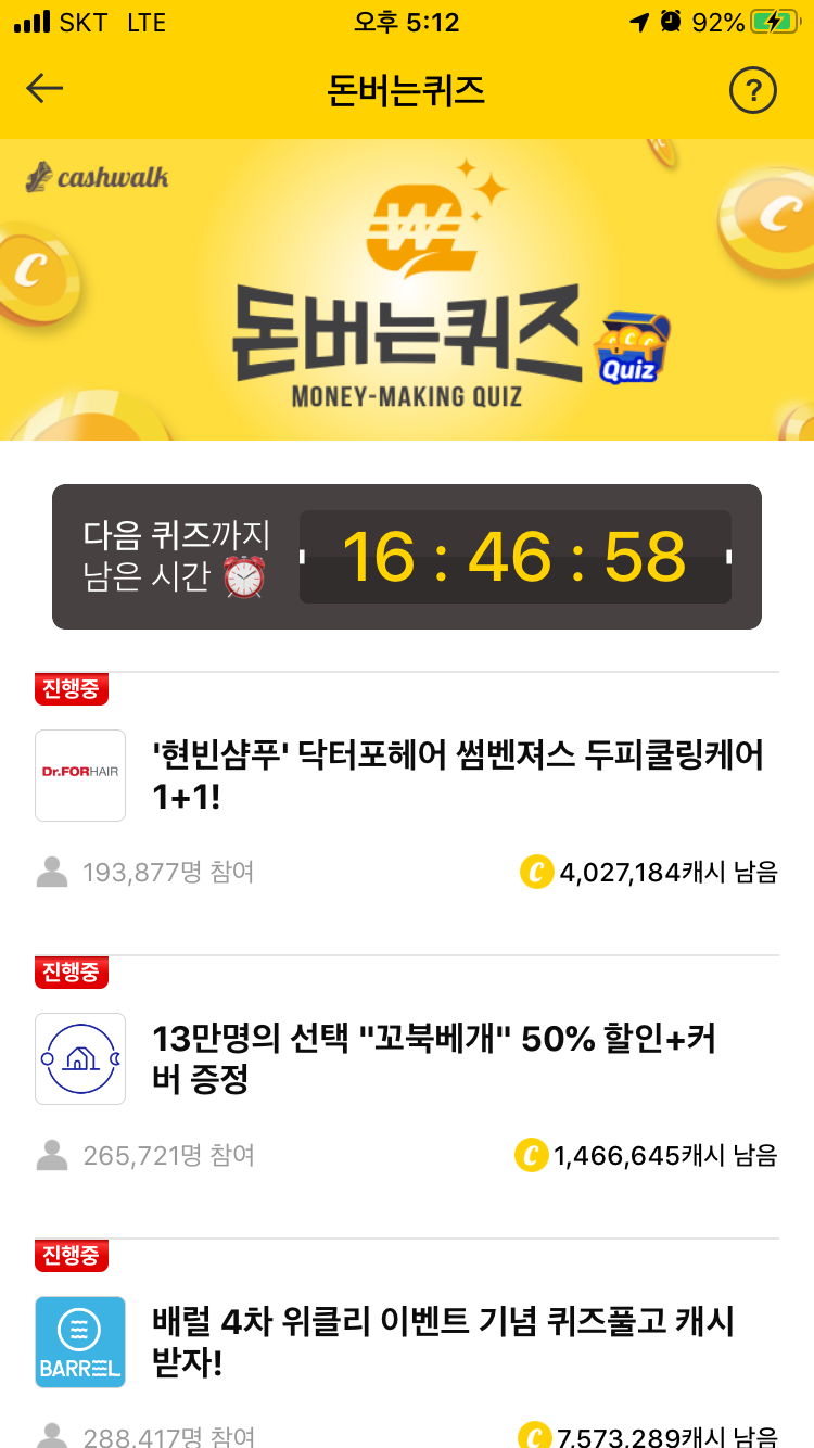 캐시워크 돈버는 퀴즈 현빈샴푸