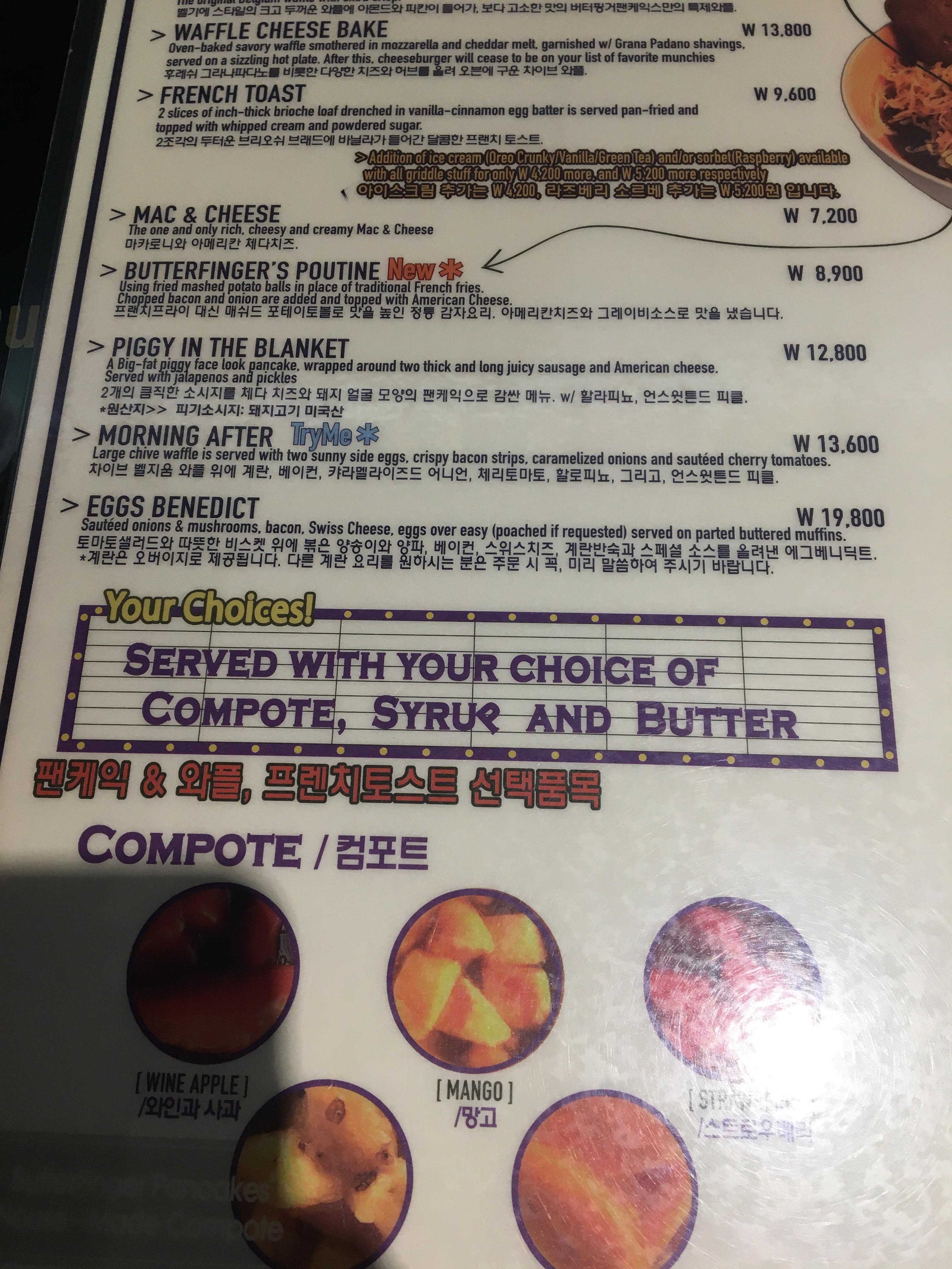 메뉴를 보시면 가격이 좀 비싼편이라서 조금은 저렴한 와플을 시키고 메인 음식인 팬케익을 시켰습니다.