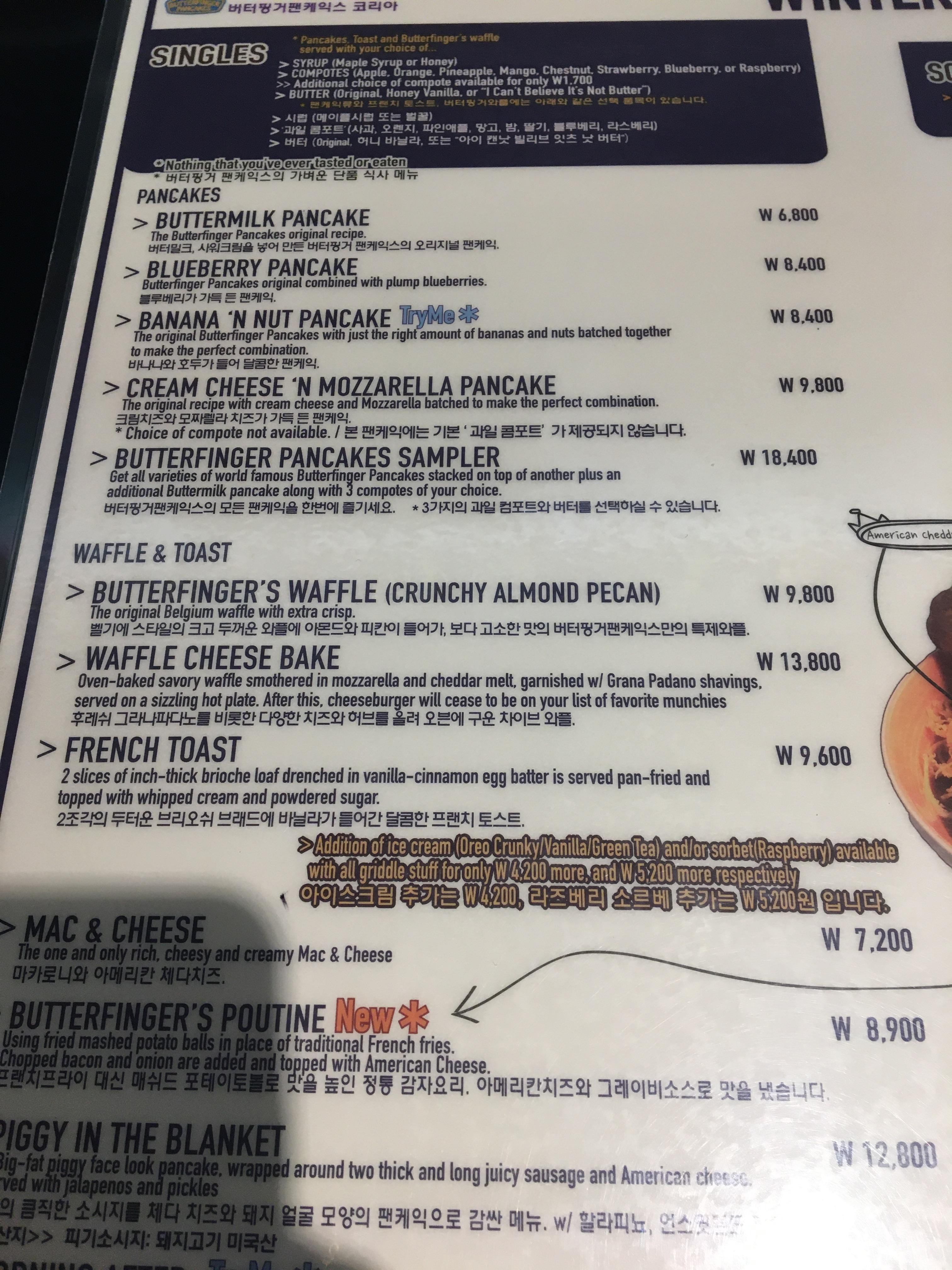 CGV에서 영화보고 한 번쯤 들린만한데 자주는 못 올 가성비의 버터핑거팬케이크입니다.