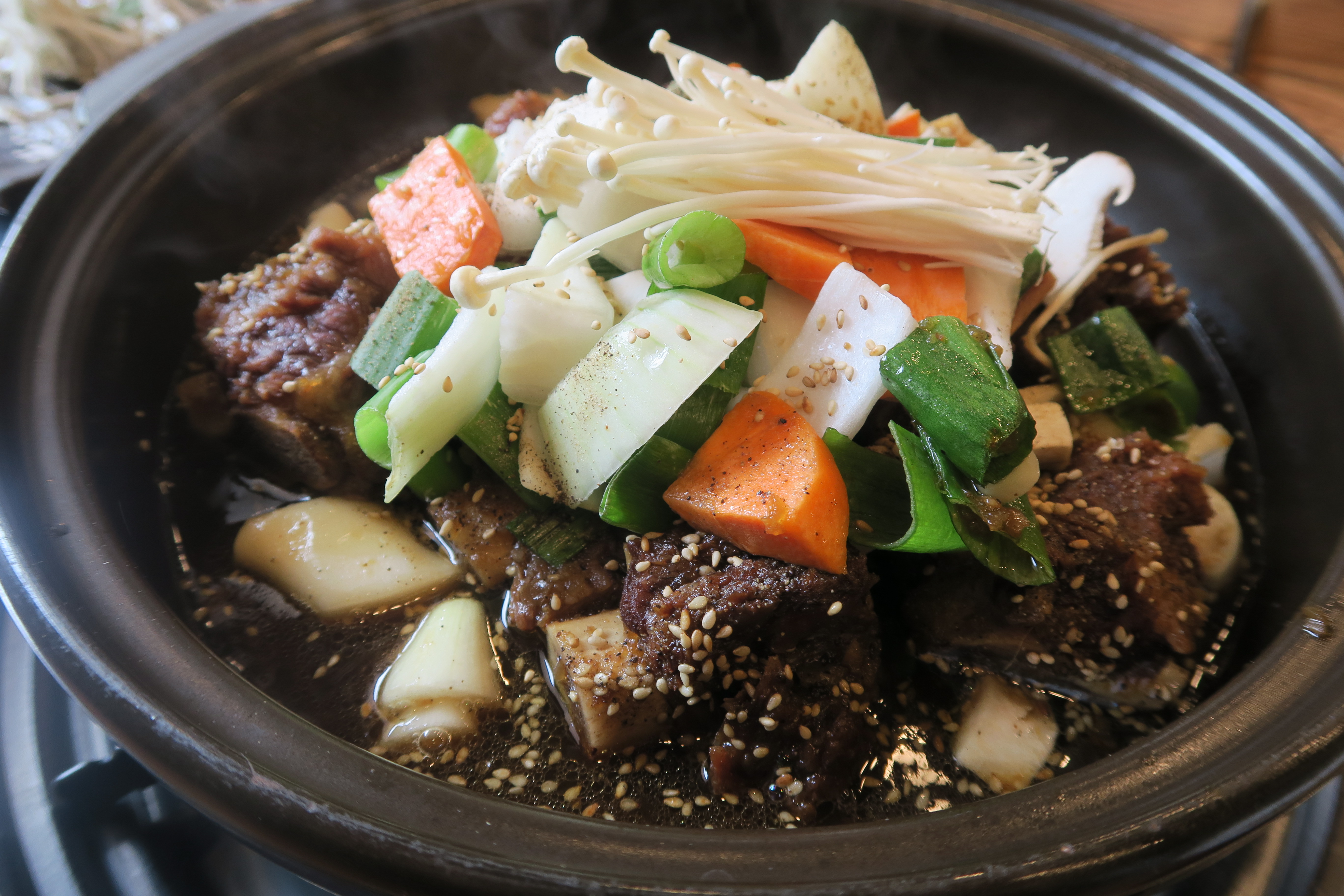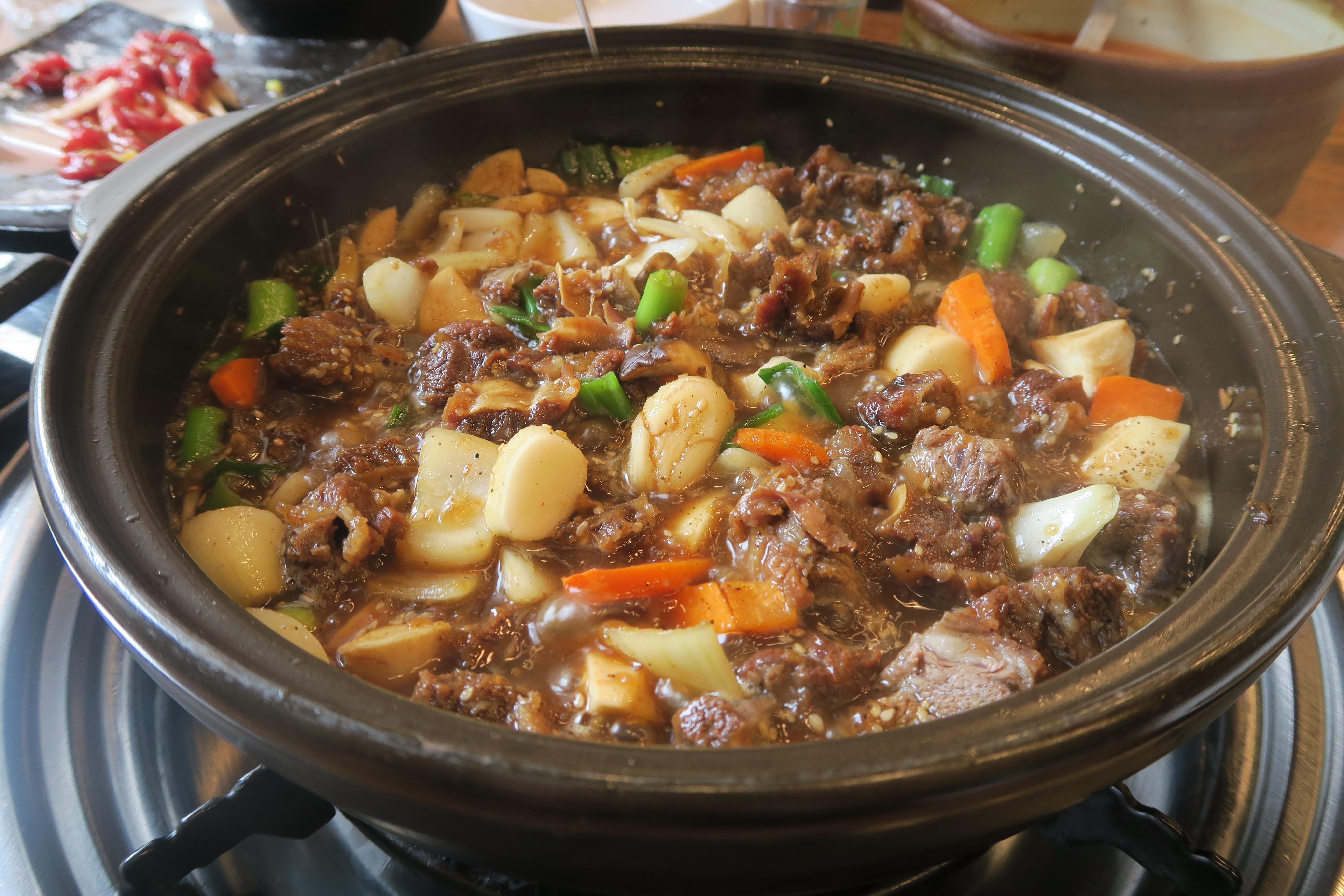 점심메뉴도에도 갈비찜정식이 따로있어서 점심메뉴로 먹을까 하다가 간장갈비찜 중짜리 하고 육회를 시켰습니다.