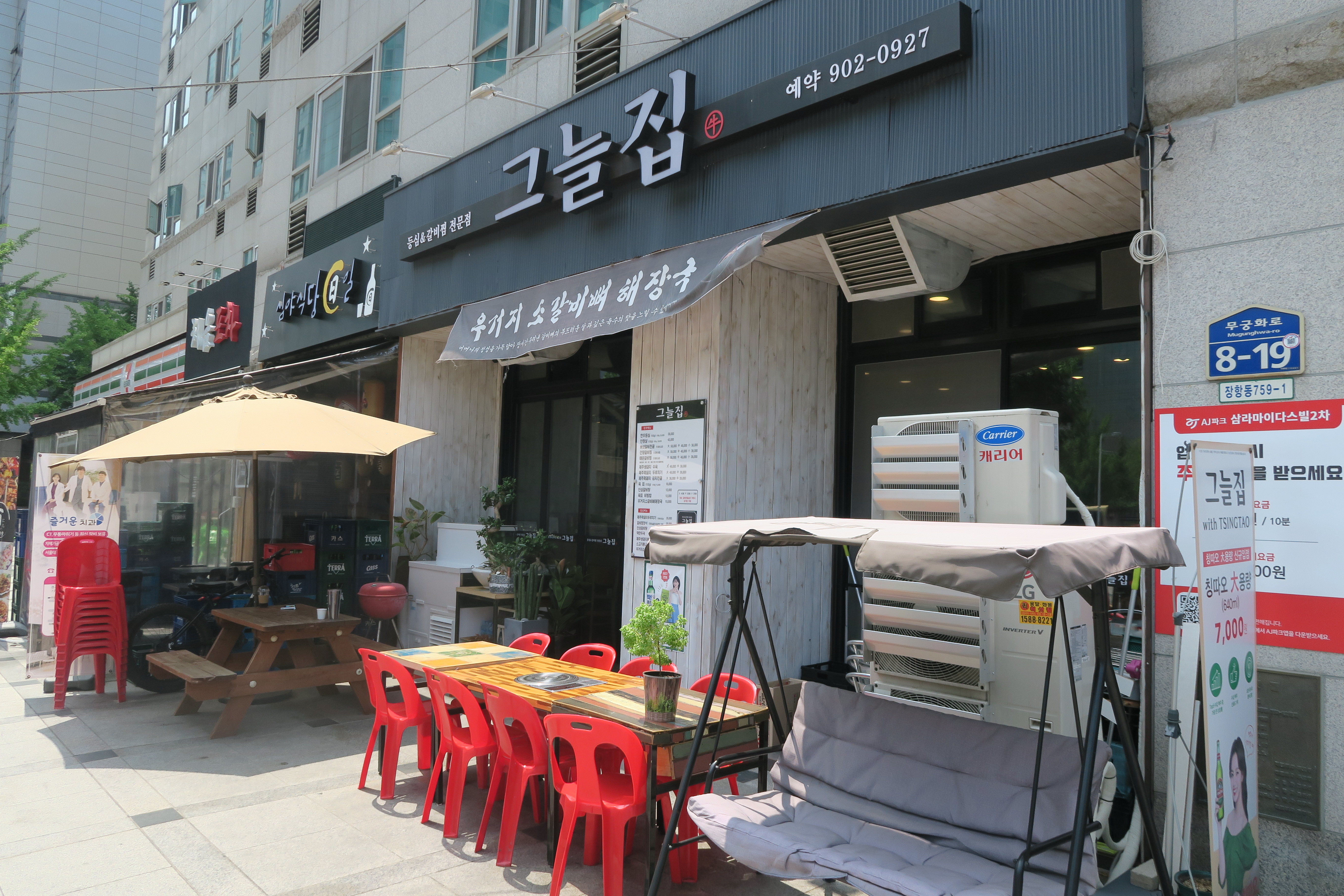 주말에 일산호수공원 근처의 장항동에서 점심으로 오래만에 갈비찜을 먹으러간 그늘집입니다. 여기는 가게 앞에