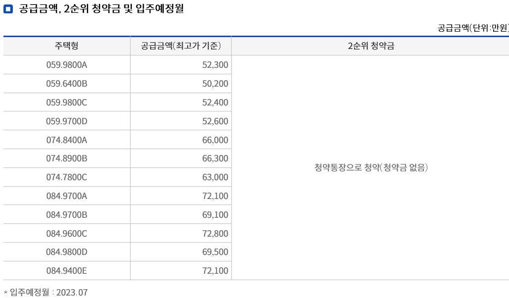 5. 주택형 : 59㎡, 74㎡, 84㎡
