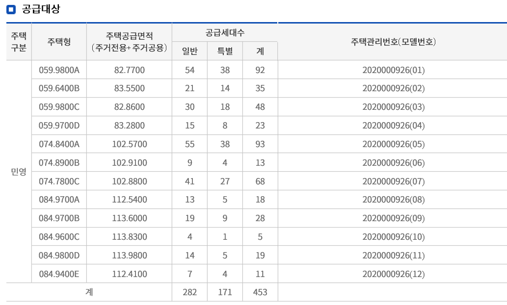 2. 공급규모: 지하3층 ~ 지상30층 15개동 및 부대복리시설 총 1,223세대 중 일반분양 453 세대
