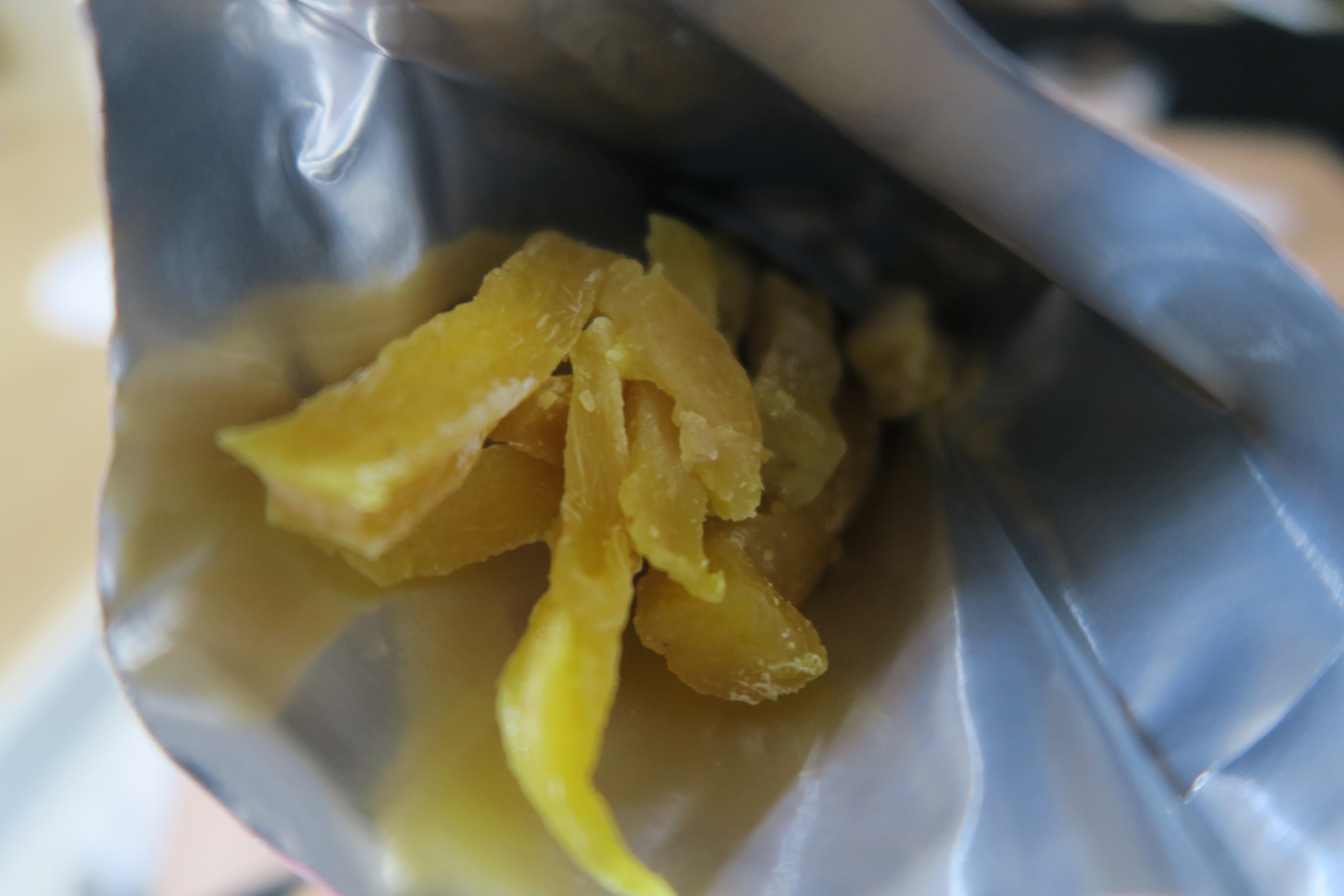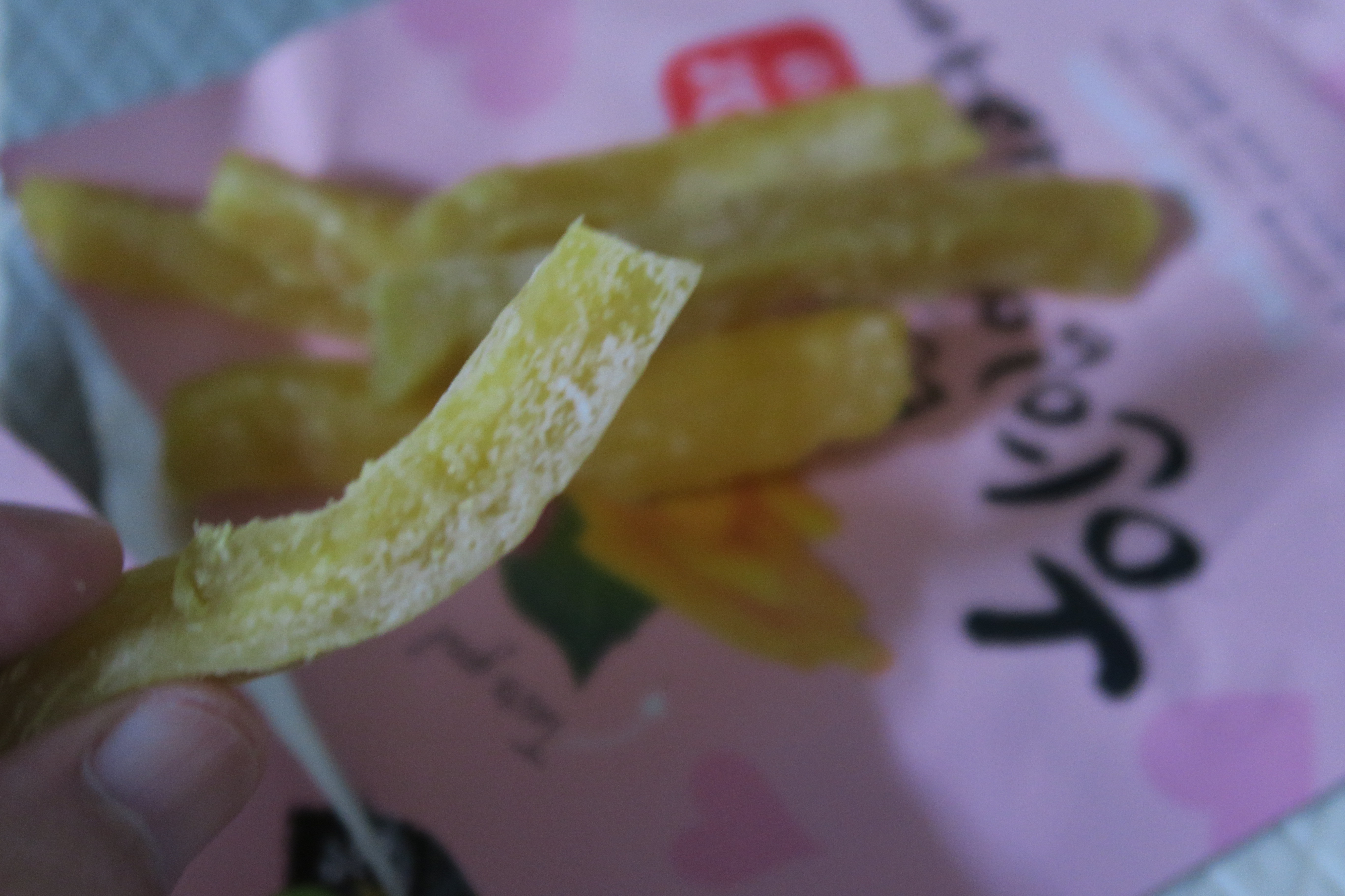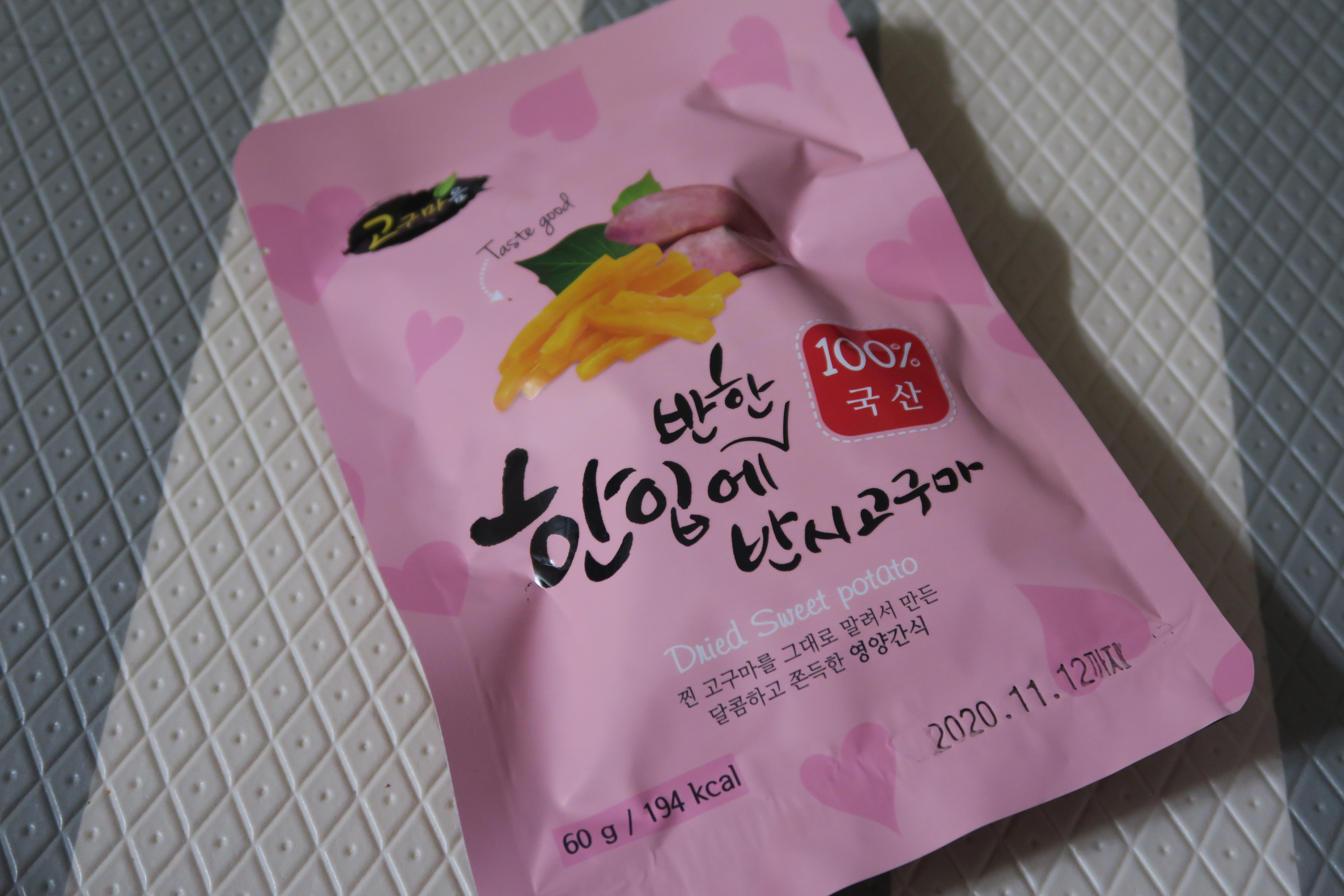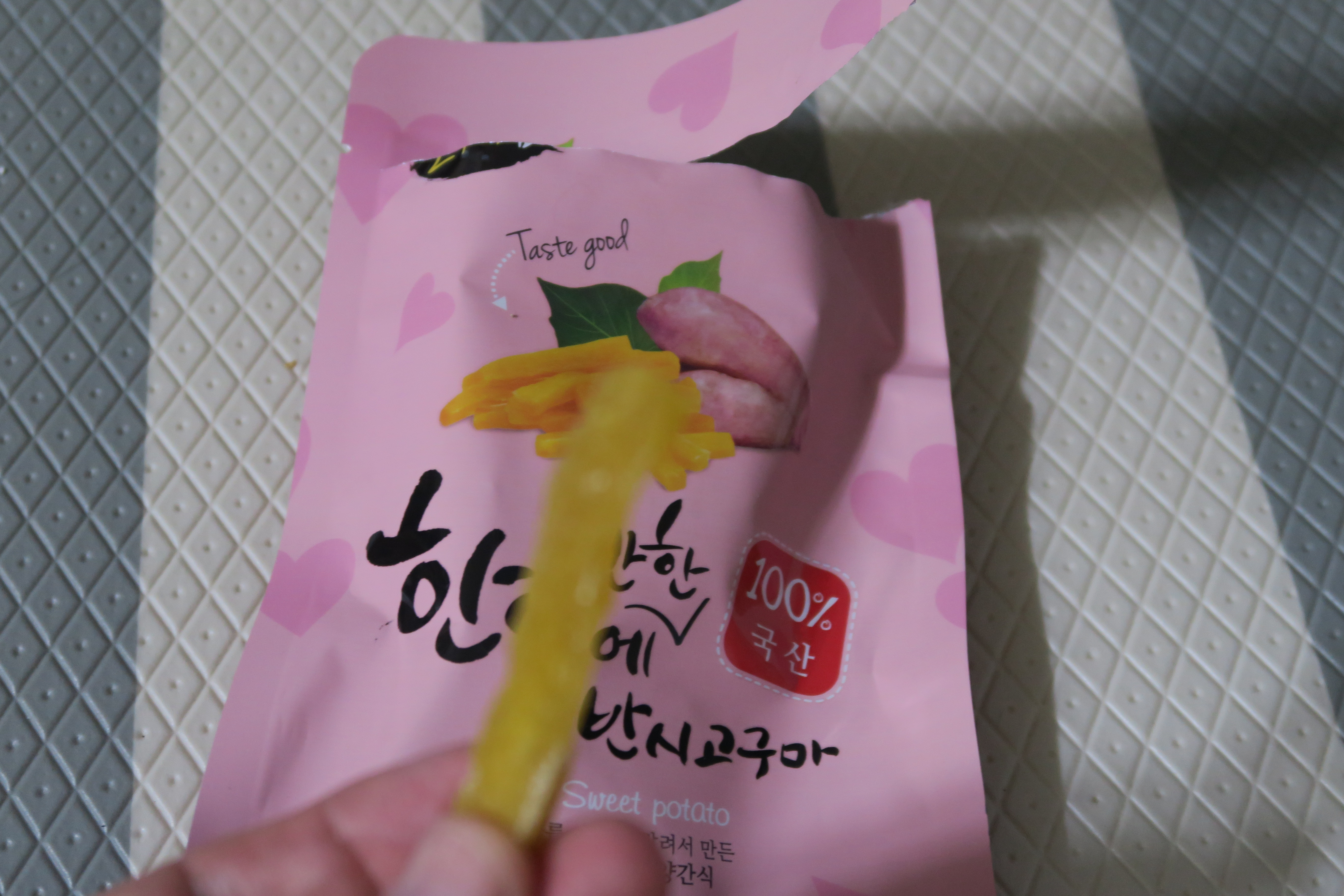 맛은 반건조 고구마여서 쫀득쫀득한 식감의 100%국산 고구마입니다. 겉에 뭐가 발라져있거나 하지 않고 순수 고구마입니다.