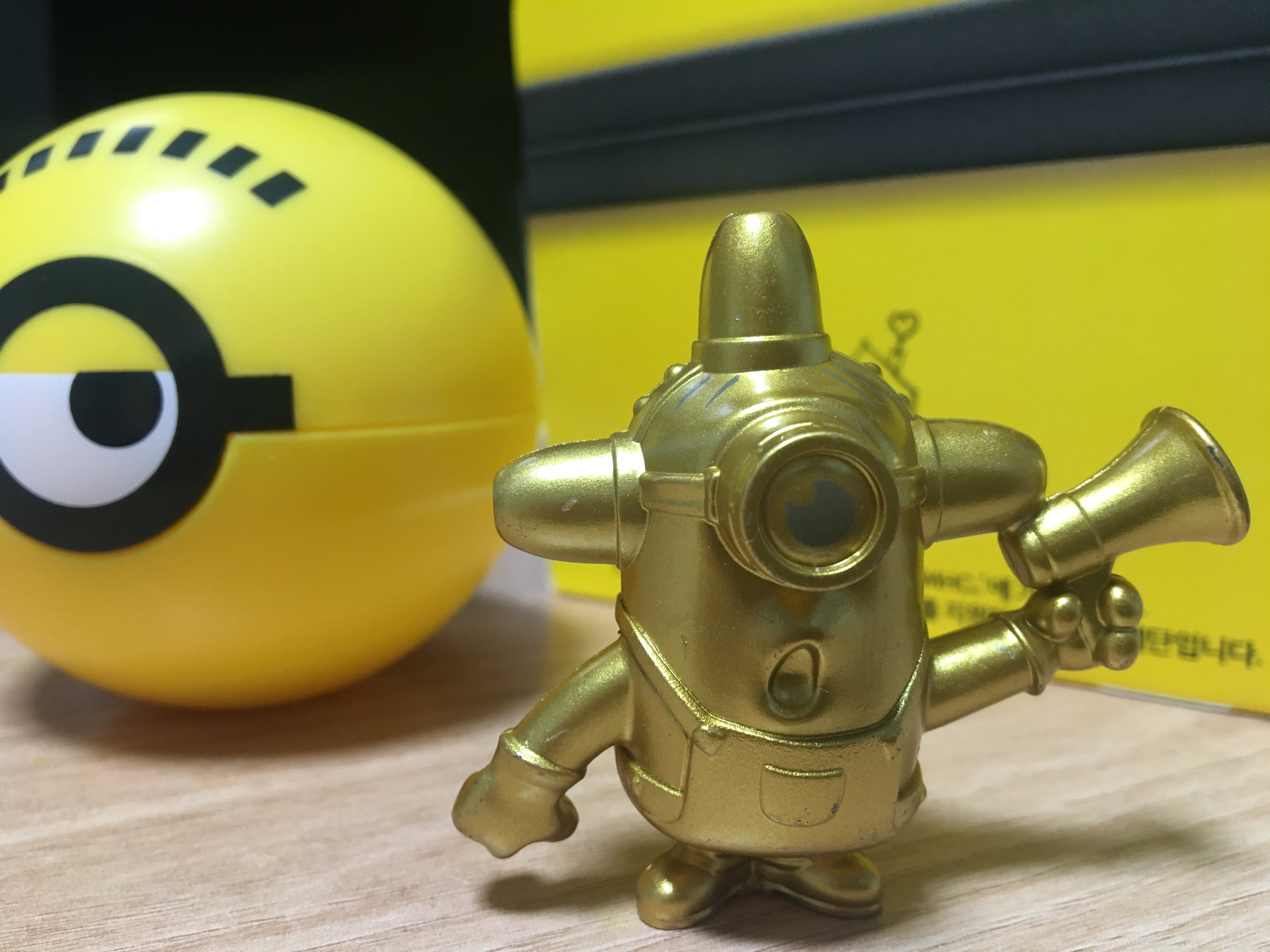저의 해피밀 피규어는 황금 미니언즈가 나왔습니다.