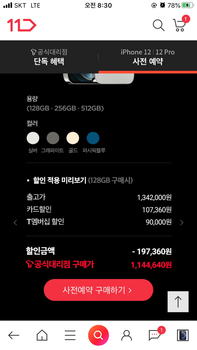 [11번가] T공식대리점 아이폰12 사전예약