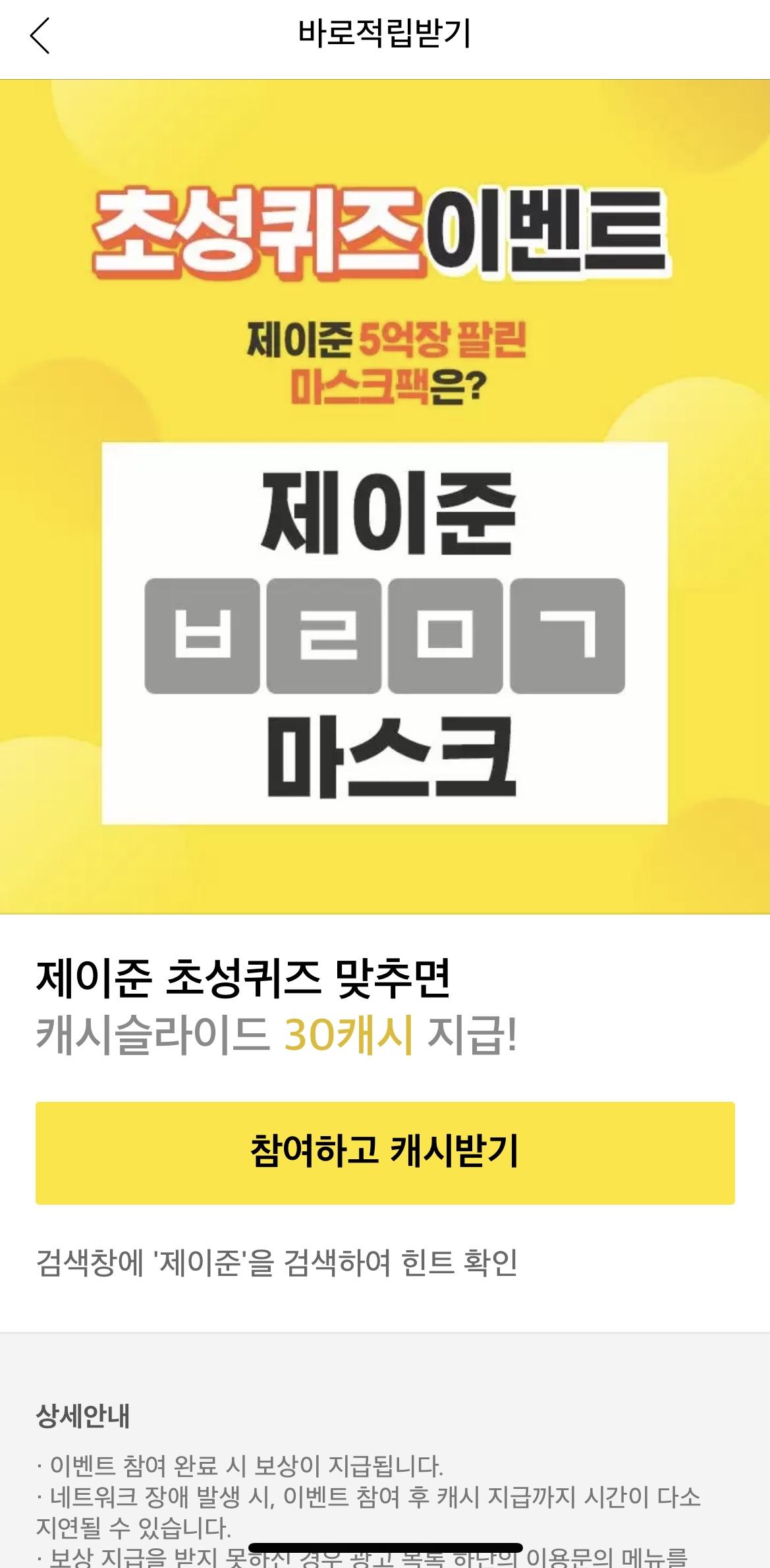 슬라이드캐시 초성퀴즈 이벤트 제이준 마스크