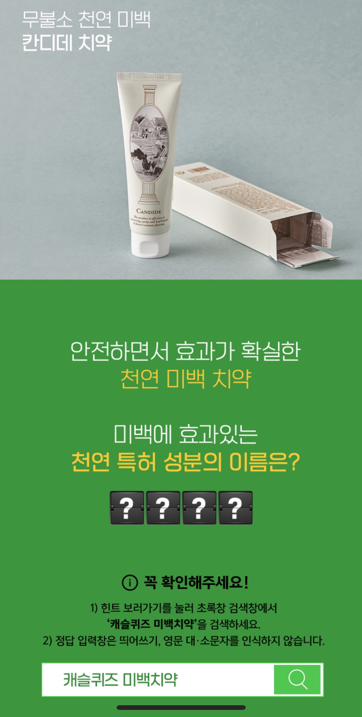 캐시슬라이드 캐슬퀴즈 미백치약 칸디데 치약