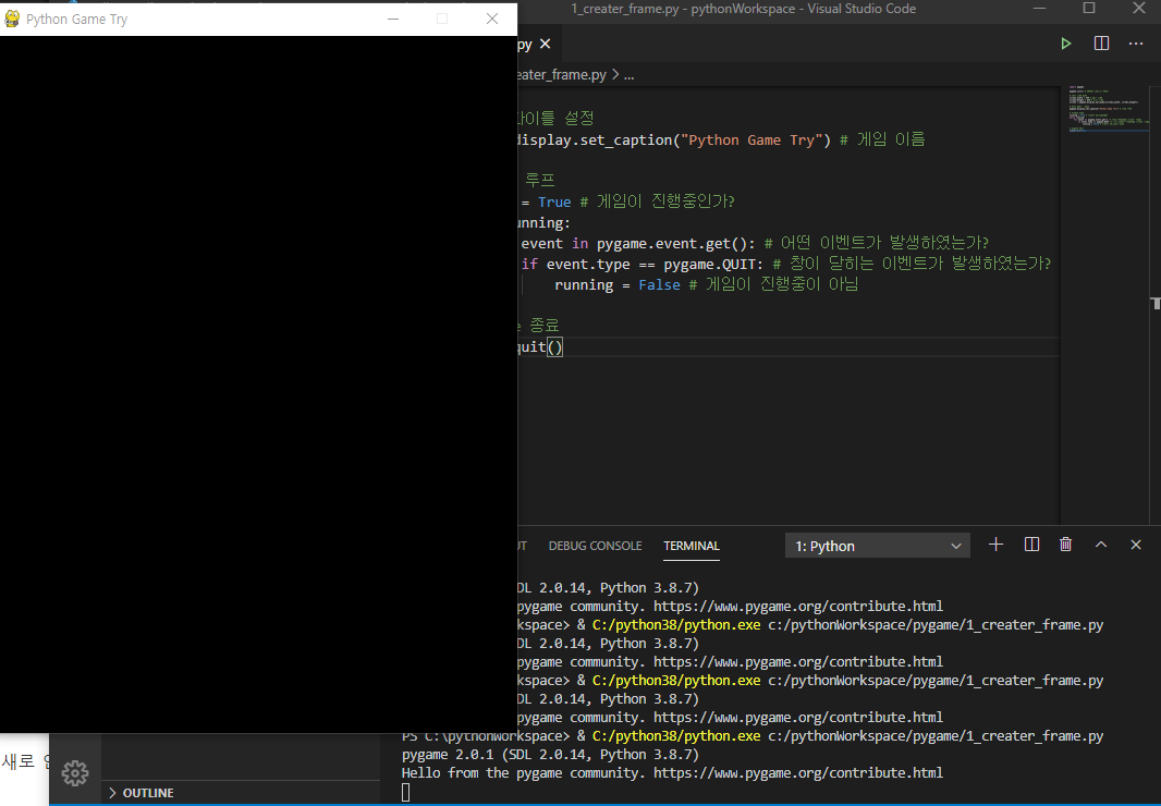 파이썬으로 이렇게 간단한 게임을 만들 수 있는게 참 신기하고 좋네요.