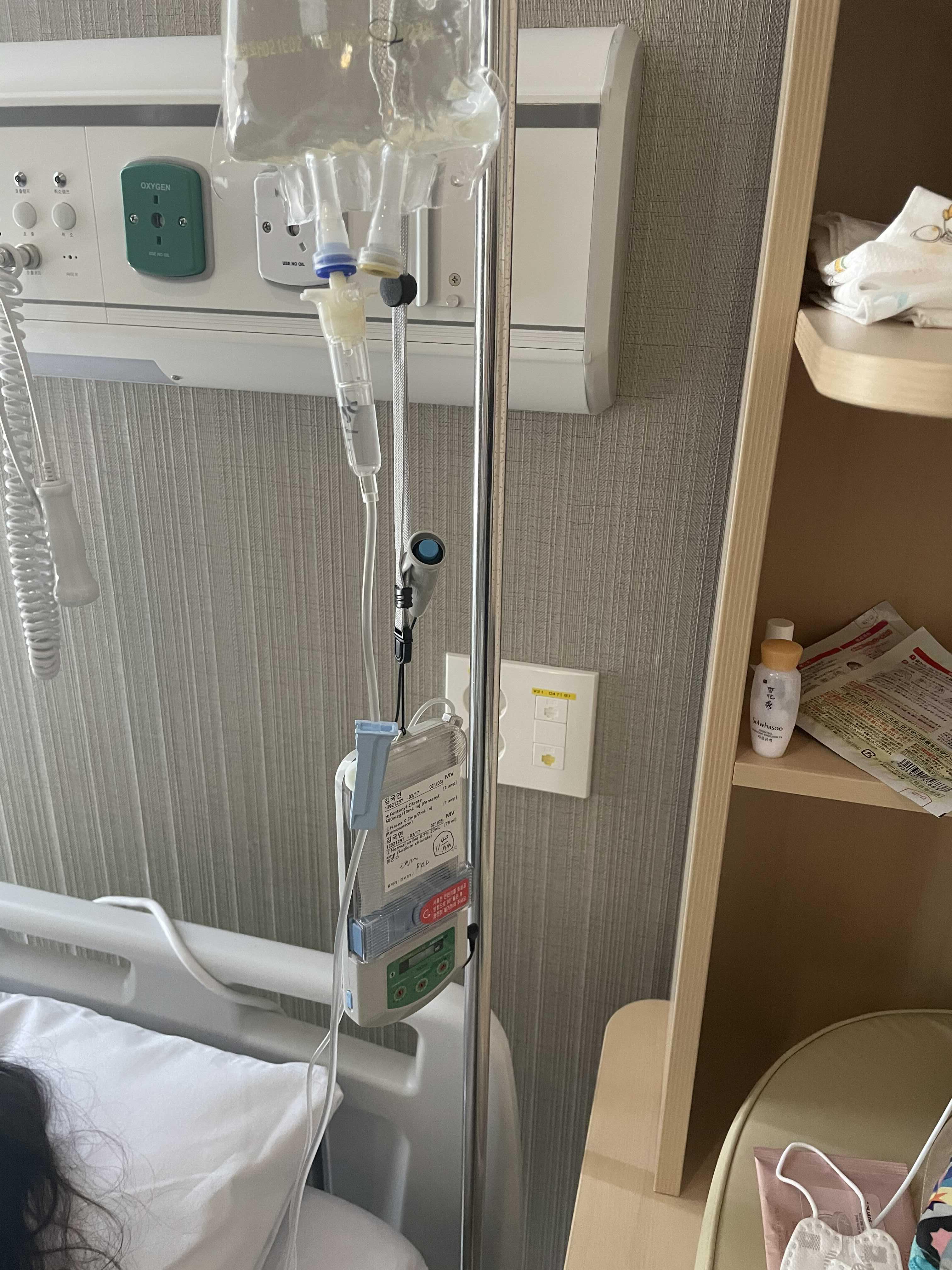 와이프한테 무통주사를 15분 마다 눌러주고 있는데 갑자기 애기가 병실에 왓습니다. ㅎㅎㅎㅎ