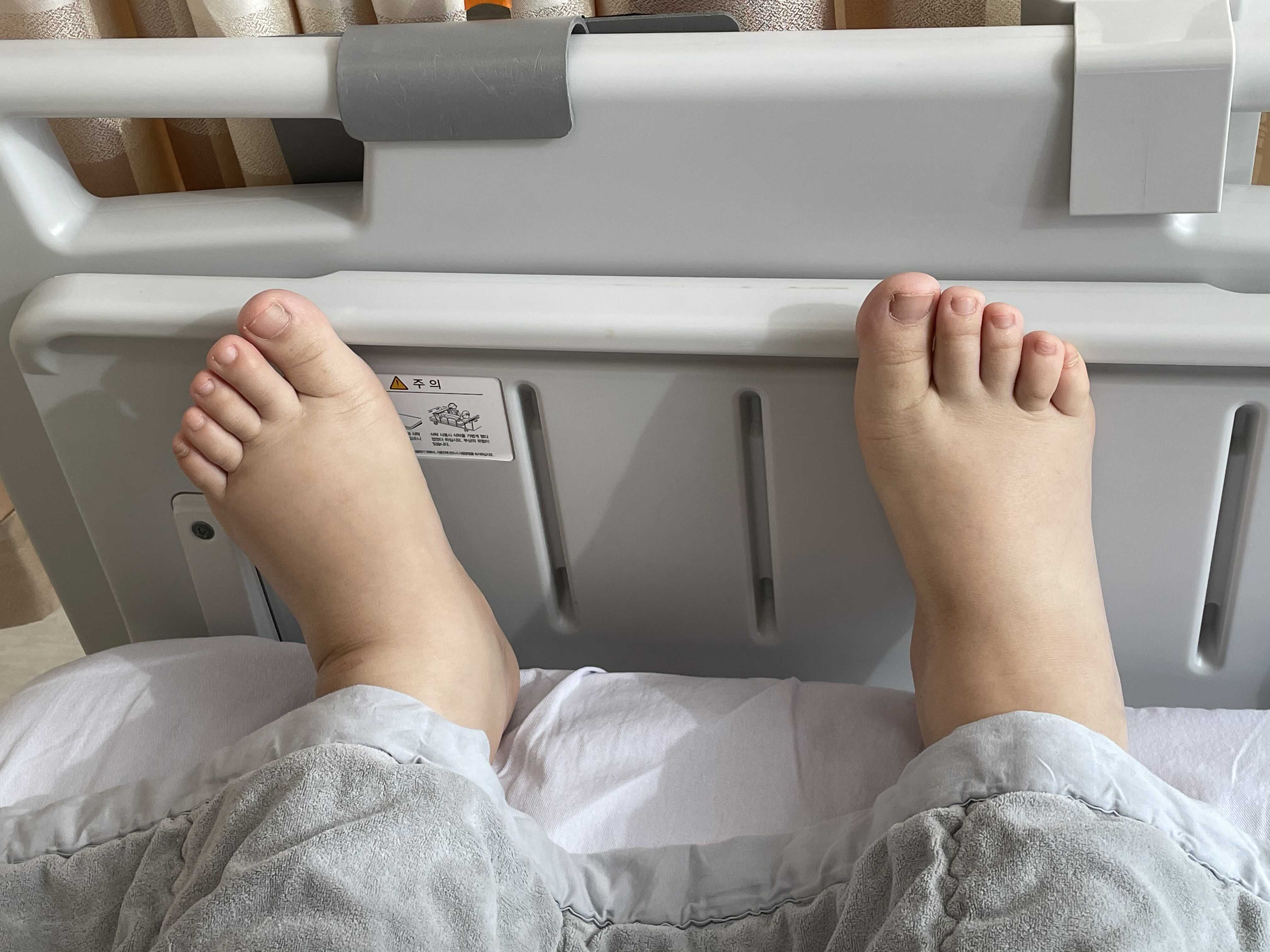다들 와이프는 얼굴, 손, 발이 붓는데 특히 발이 엄청 부었죠?? 보통 수술한날도 붓고 다음날도 엄첨 붓습니다.