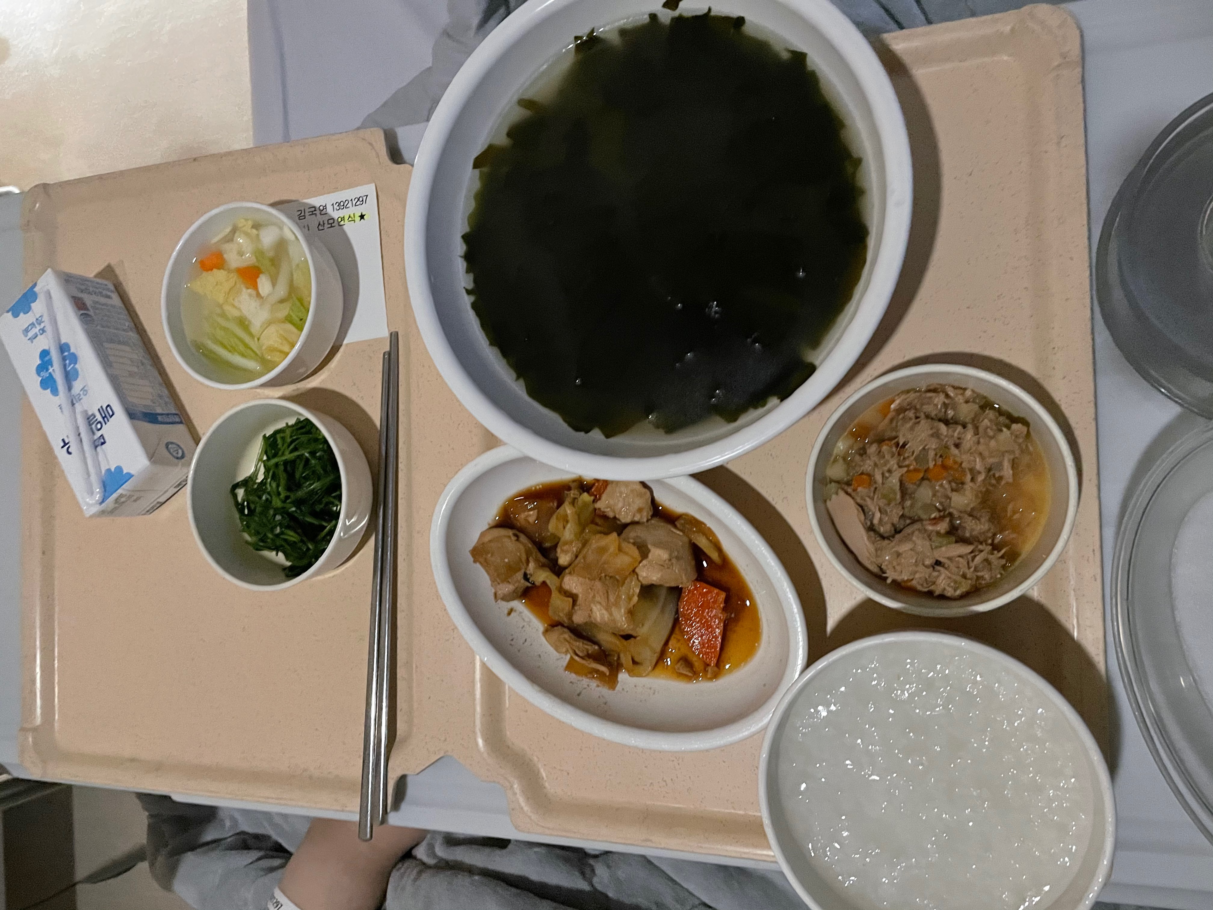 방귀뀌고 간호사한테 이야기했지만 살짝 타이밍이 안맞아서 오늘은 아침도 죽으로 나왔습니다.