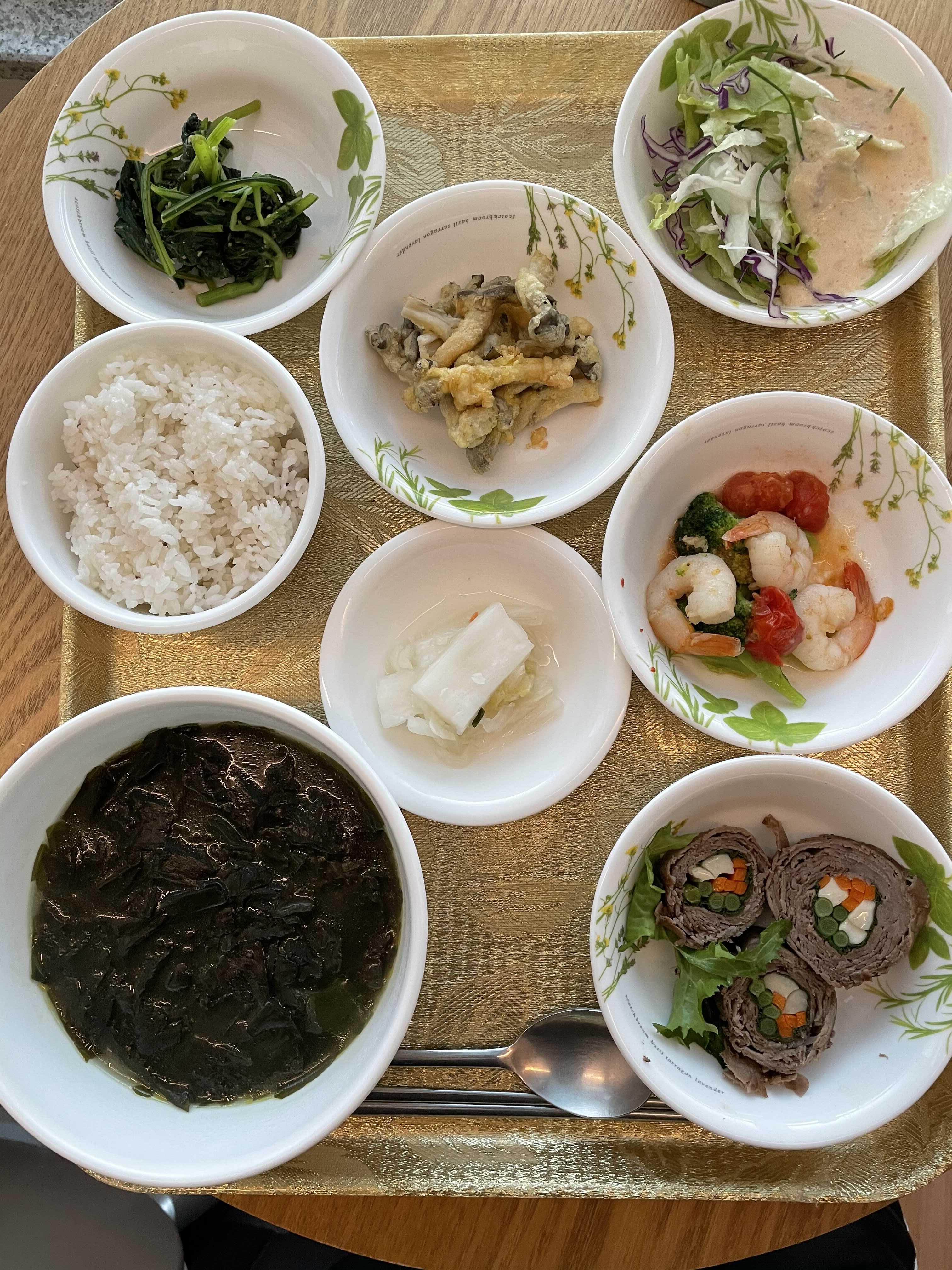 음식은 안좋은 후기가 많아서 걱정했는데 괜찮았습니다. 미역국은 어쩌다 한 번 빼곤 계속 나옵니다.