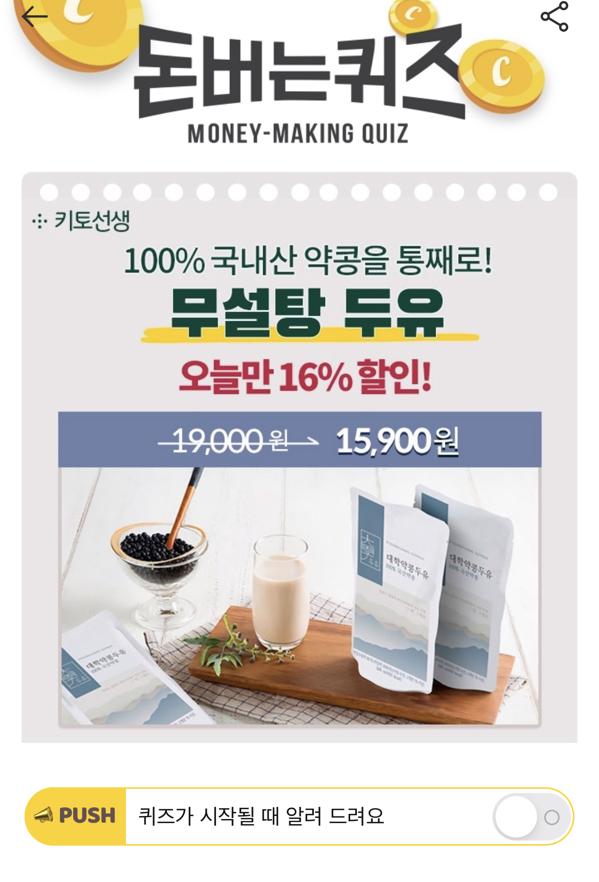 캐시워크 돈버는 퀴즈 정답 키토선생 대학약콩두유