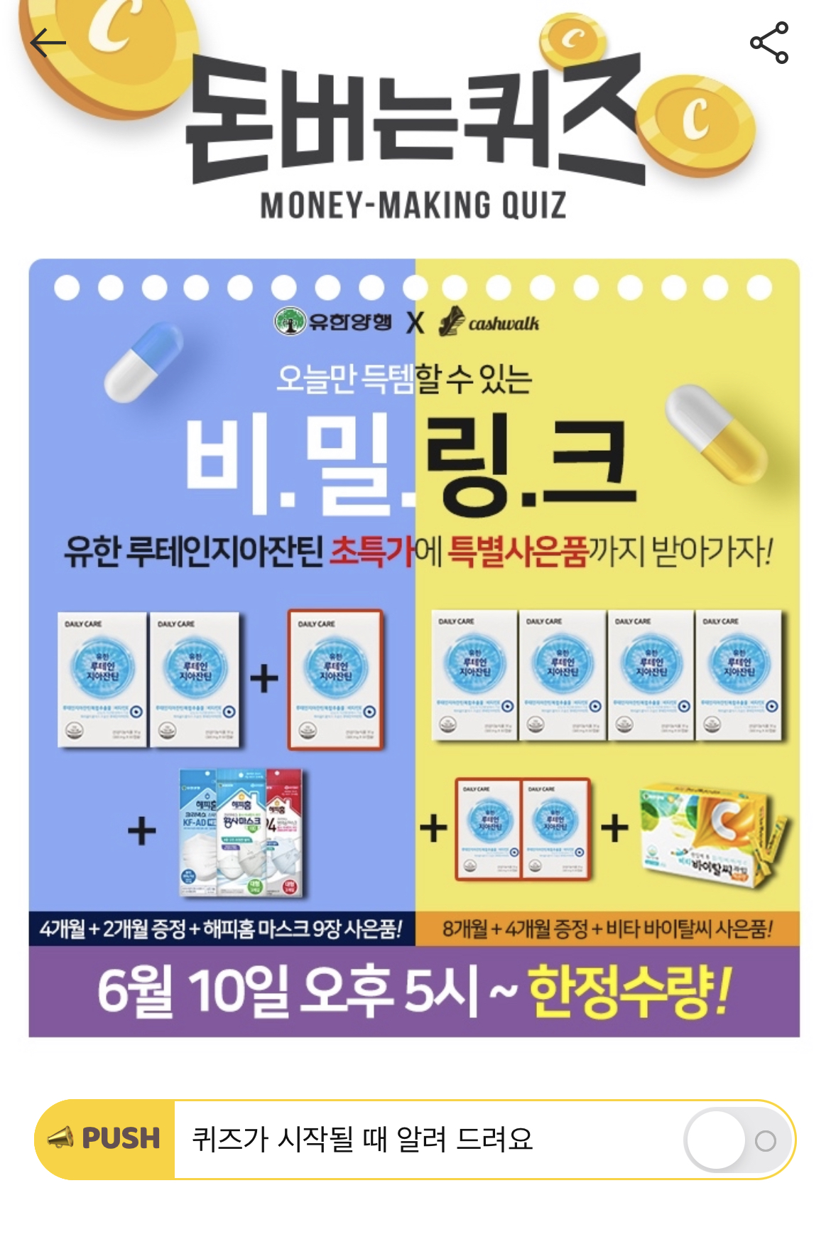 캐시워크 돈버는 퀴즈 정답 유한 루테인 지아잔틴 ㅎㅇ