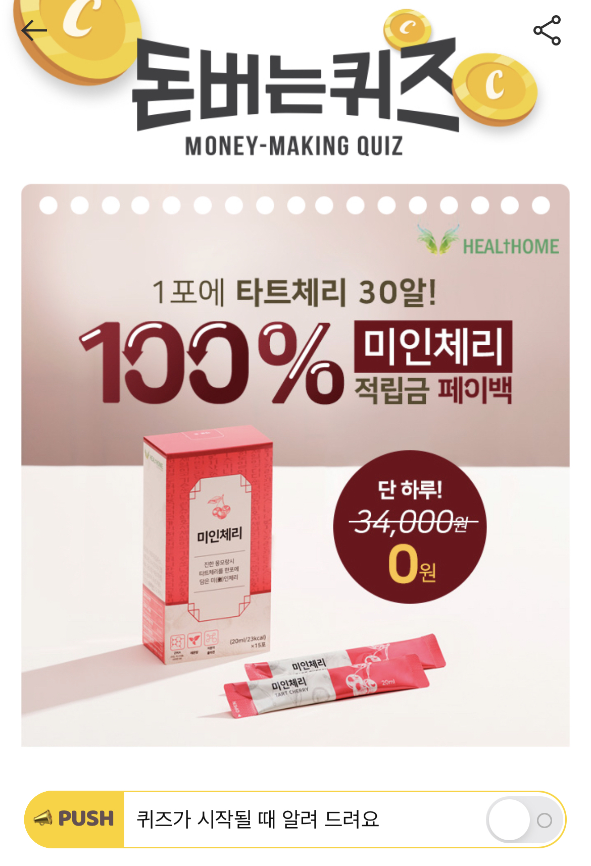 캐시워크 돈버는 퀴즈 정답 미인체리 ㅁㄱㄴㅅ