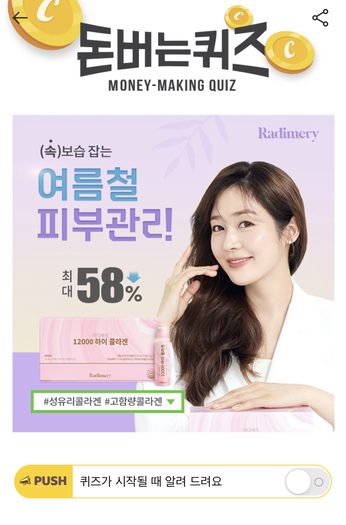 캐시워크 돈버는 퀴즈 정답 라디메리 콜라겐 ㅇㅌㄹㅇ