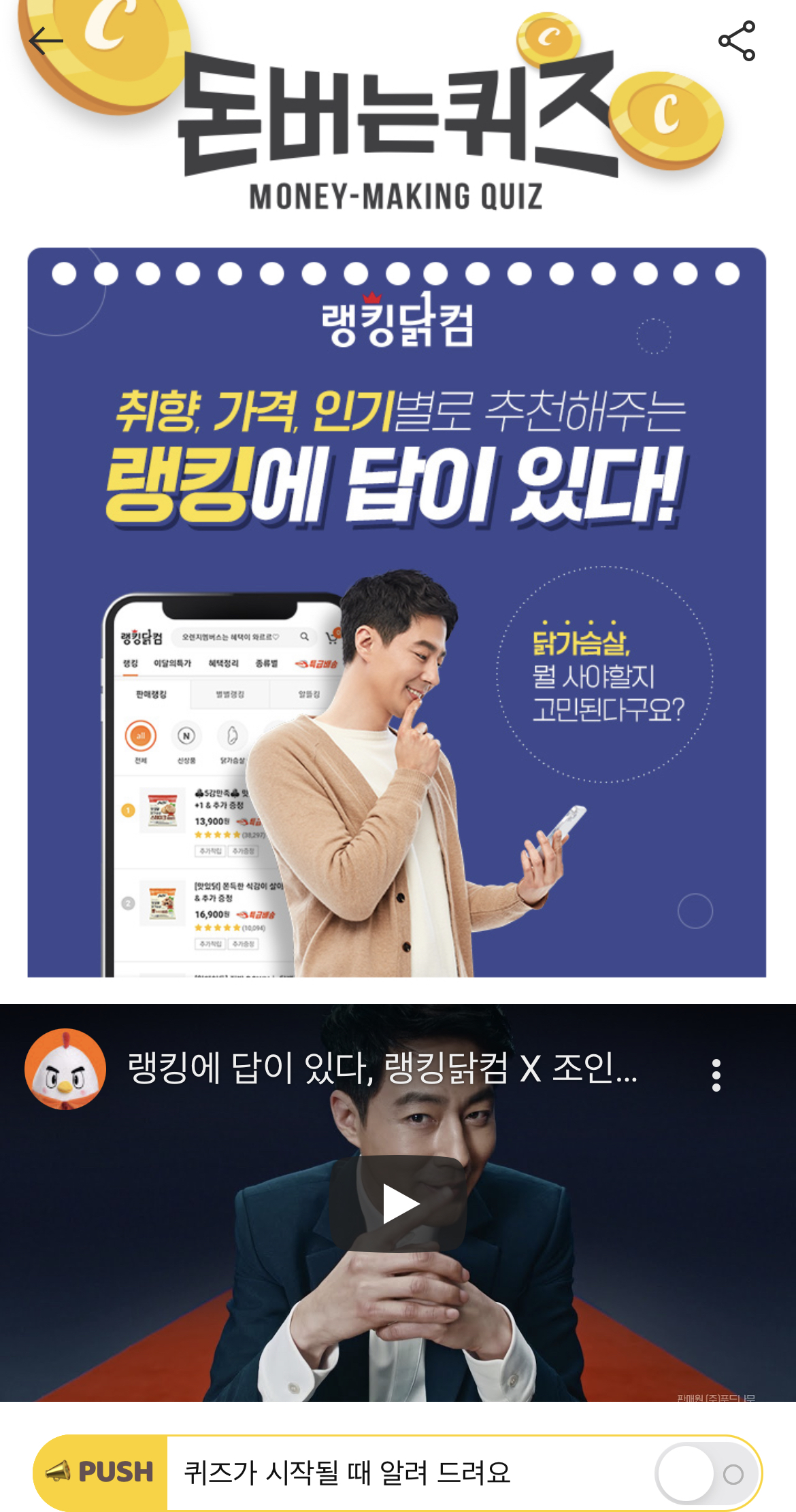 캐시워크 돈버는 퀴즈 정답 랭킹닭컴 ㅇㅈㅇㅅ
