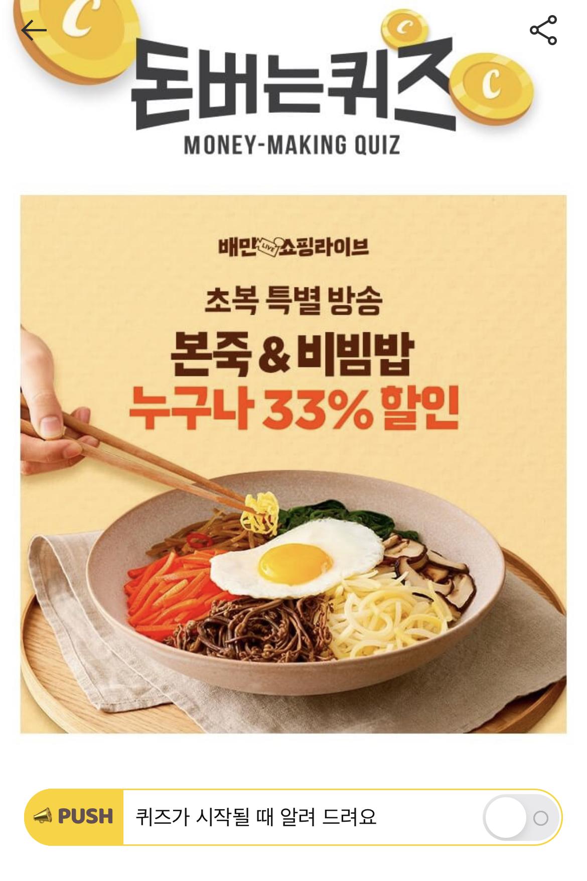 캐시워크 돈버는퀴즈 정답 본죽 초복 배민쇼핑라이브 할인