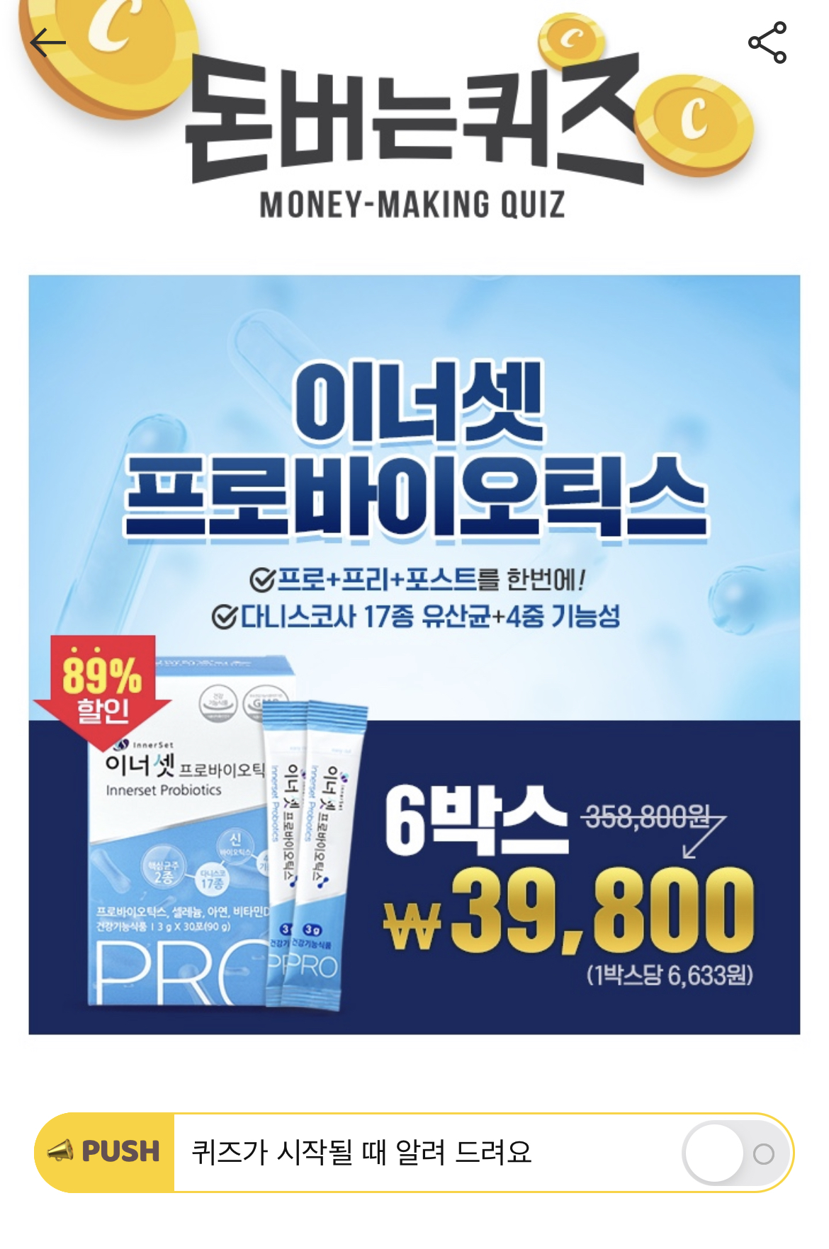 캐시워크 돈버는퀴즈 정답 이너셋 프로바이오틱스 ㄷㄴㅅㅋㅅ
