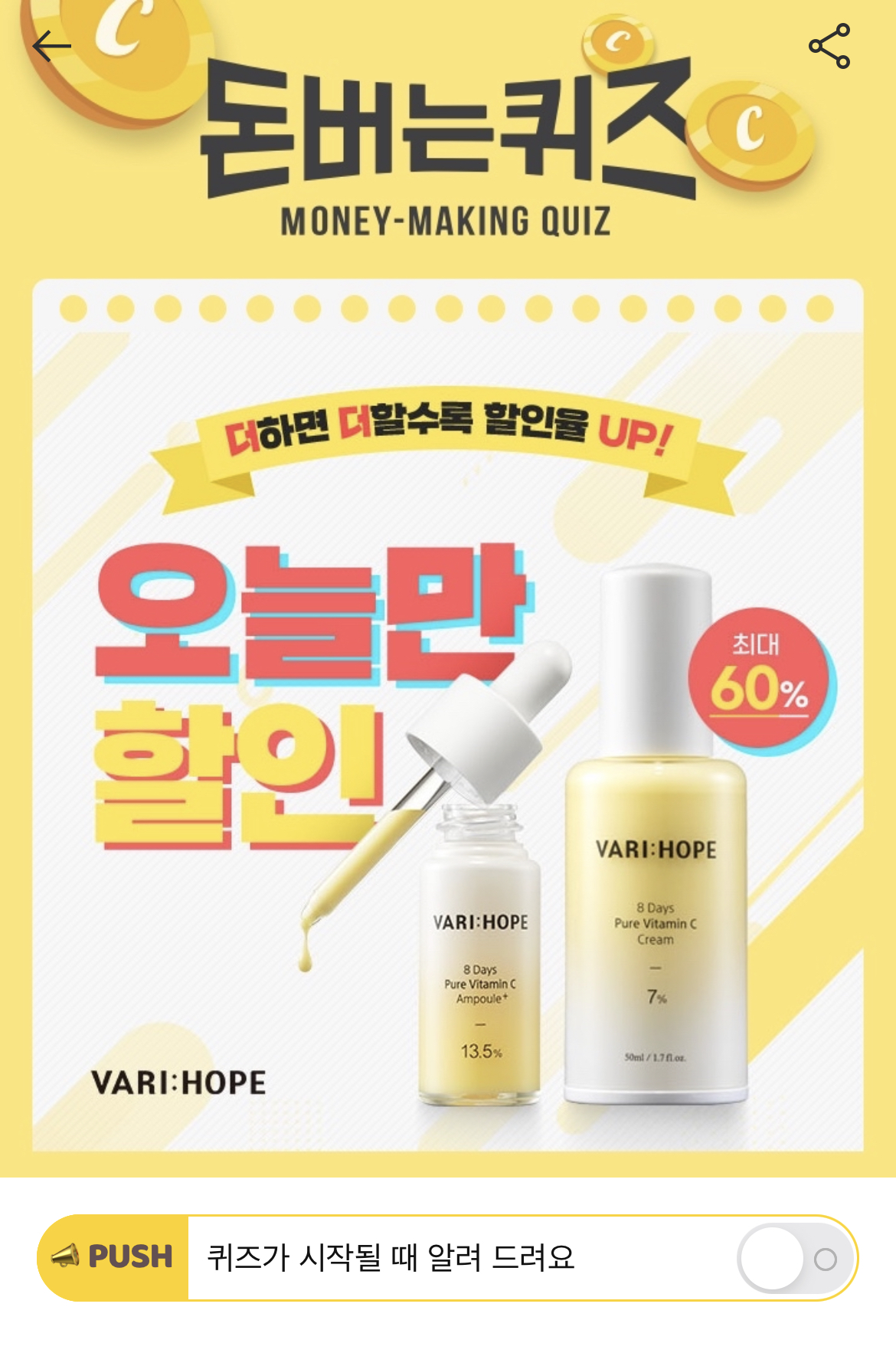 캐시워크 돈버는 퀴즈 정답 베리홉 8일미백앰플 ㅅㅅㅂㅌㅁ