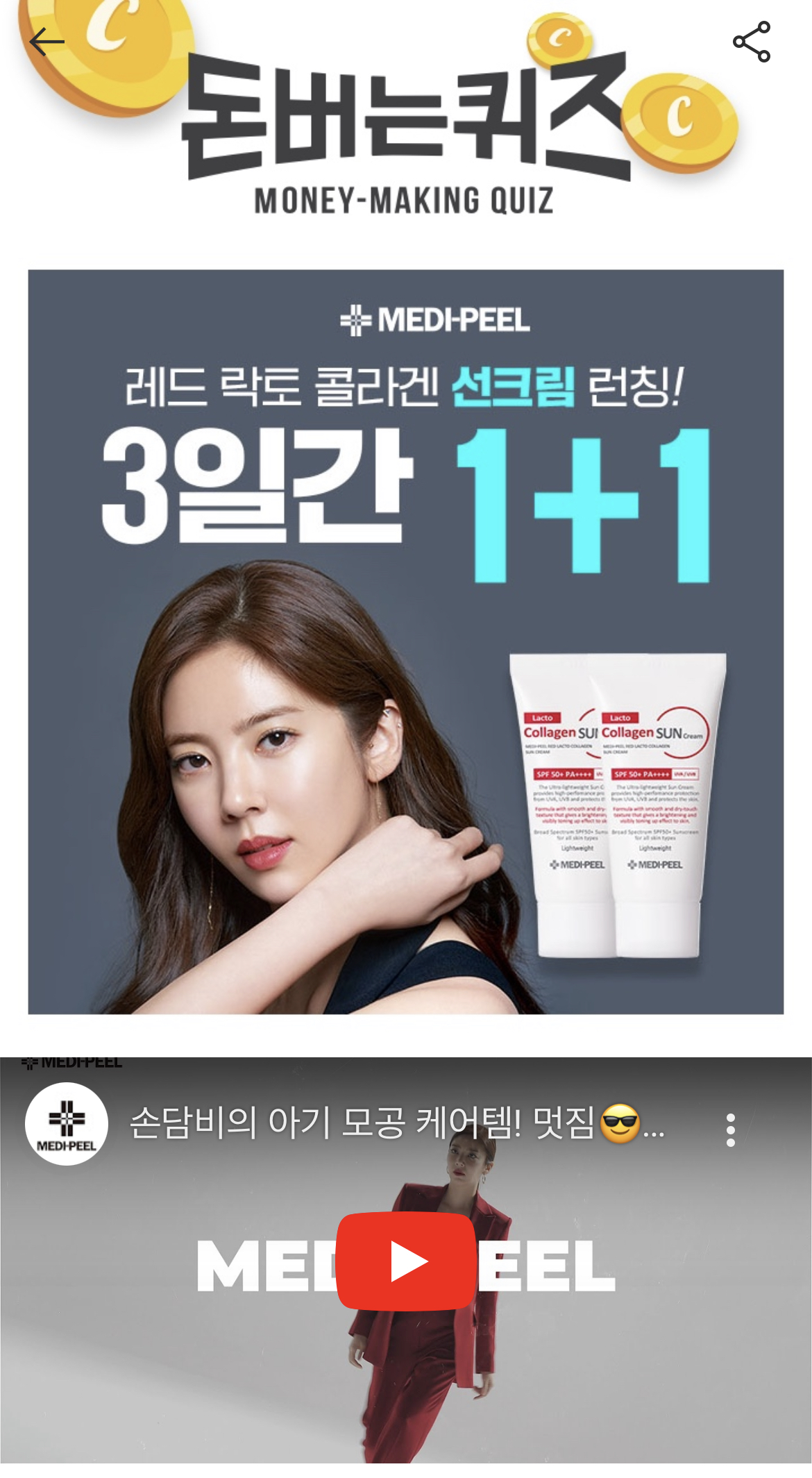 캐시워크 돈버는퀴즈 정답 레드 락토 콜라겐 선크림 발효물