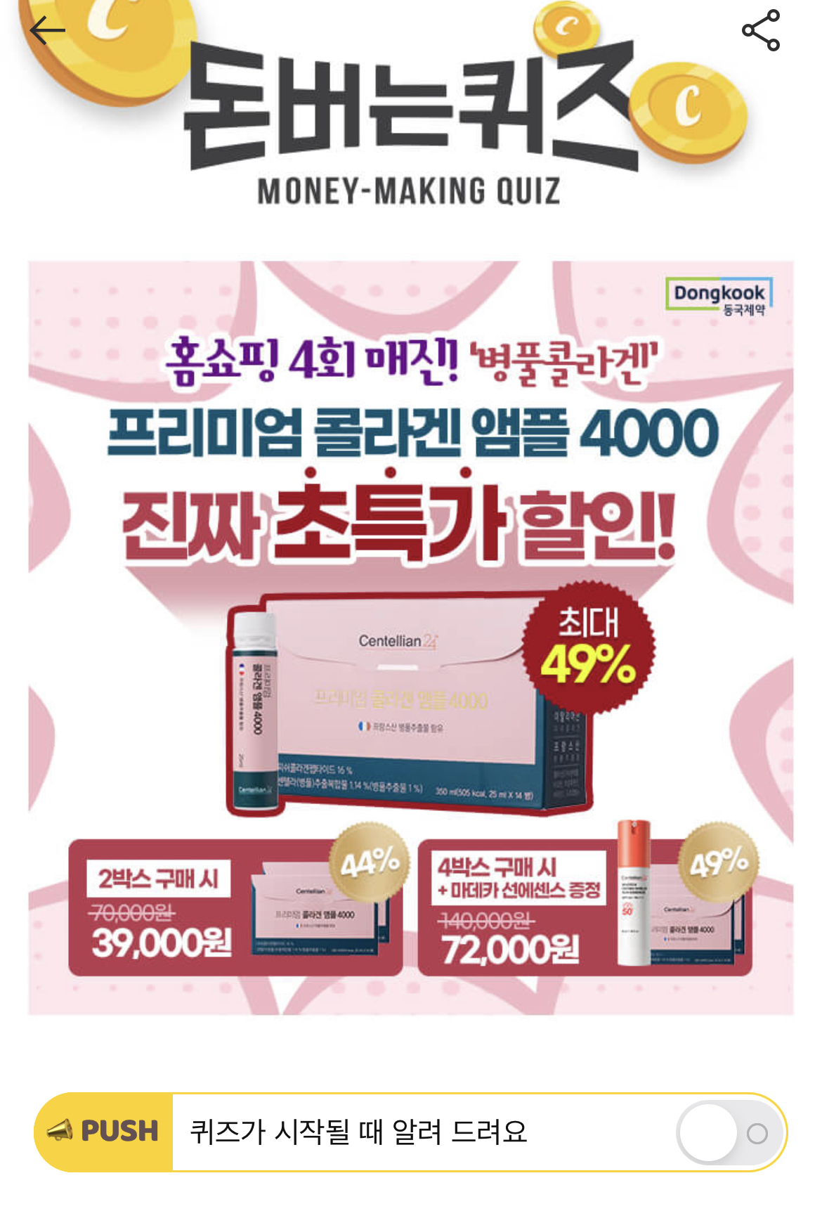 캐시워크 돈버는 퀴즈 정답 병풀콜라겐 동국제약 프리미엄 콜라겐 앰플 ㅇㅁㄴㅅ