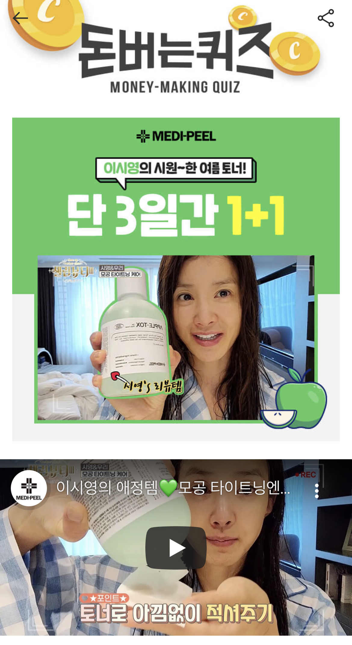캐시워크 돈버는 퀴즈 정답 닥터 애플 톡스 포어 토너 ㅁㄱ