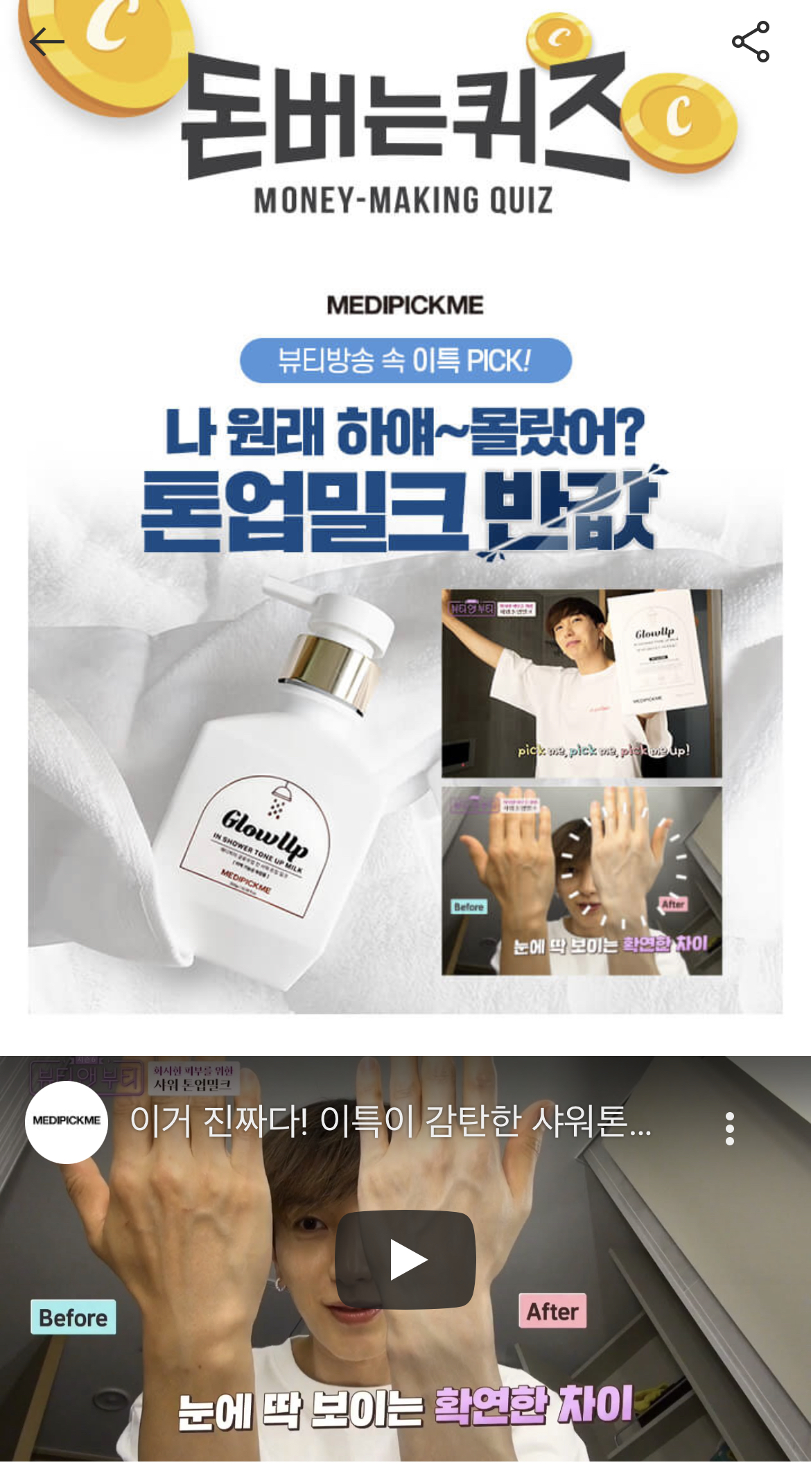 캐시워크 돈버는 퀴즈 정답 톤업밀크 반값
