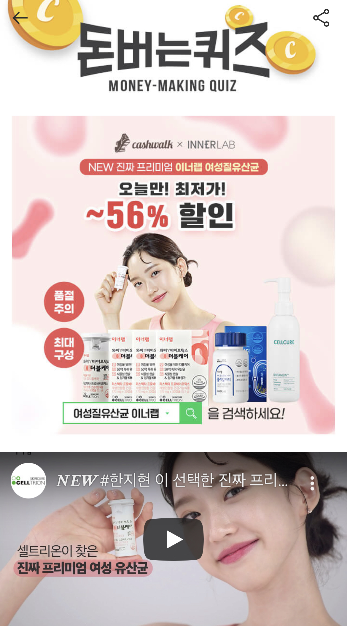 캐시워크 돈버는퀴즈 정답 이너랩 여성질유산균