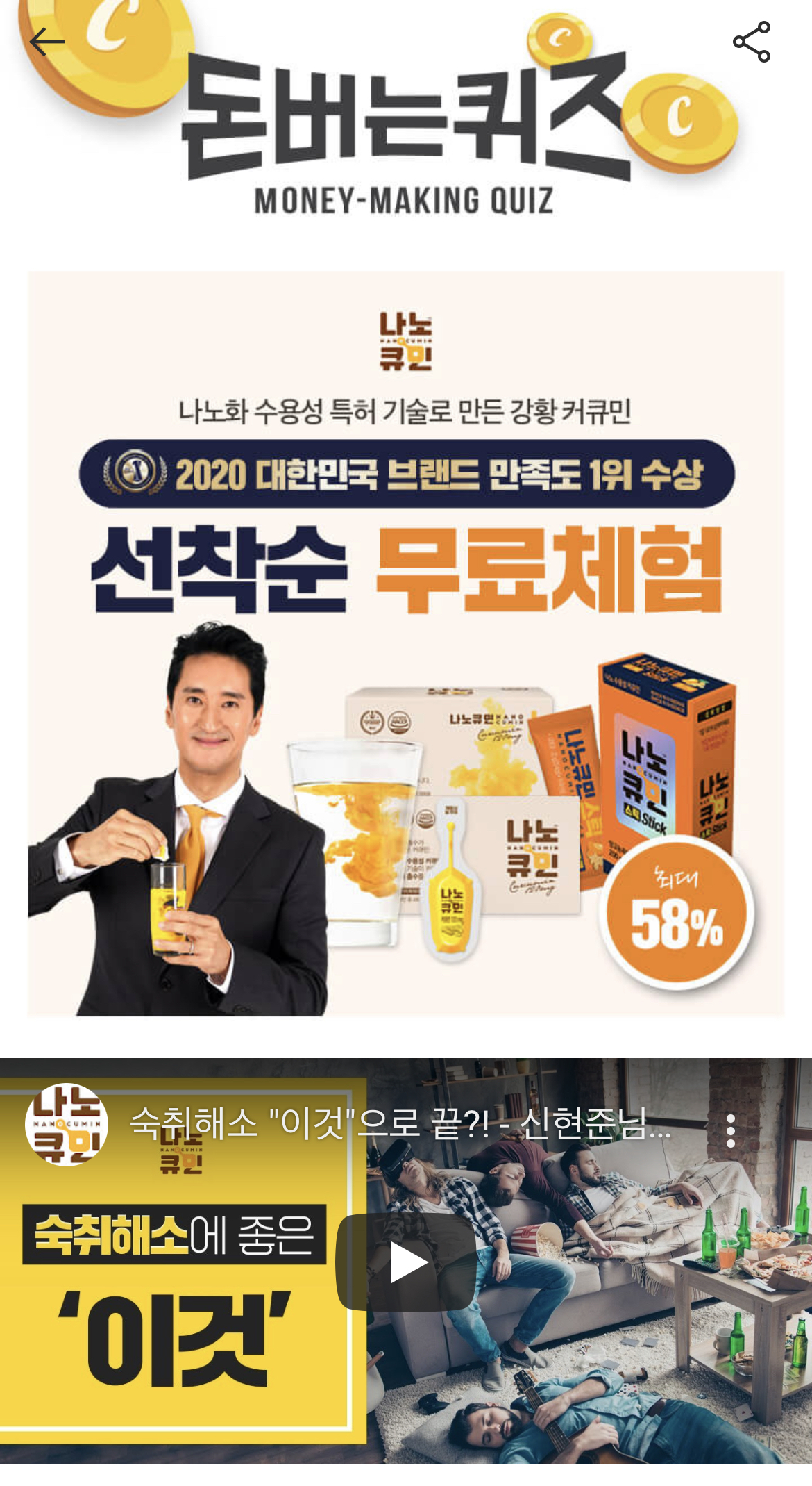 캐시워크 돈버는퀴즈 정답 나노큐민 5대 건강기능성분