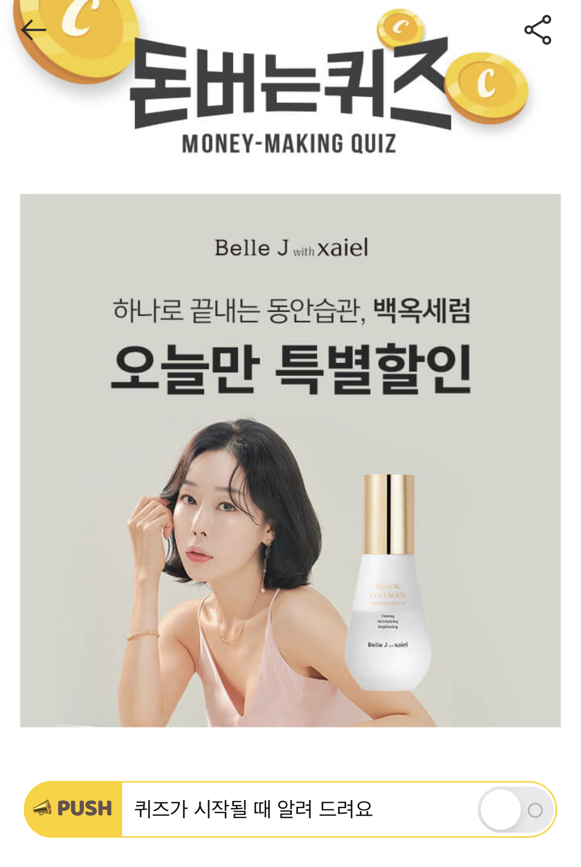 캐시워크 돈버는 퀴즈 정답 백옥 콜라겐 크림 in 세럼 ㅋㄹ