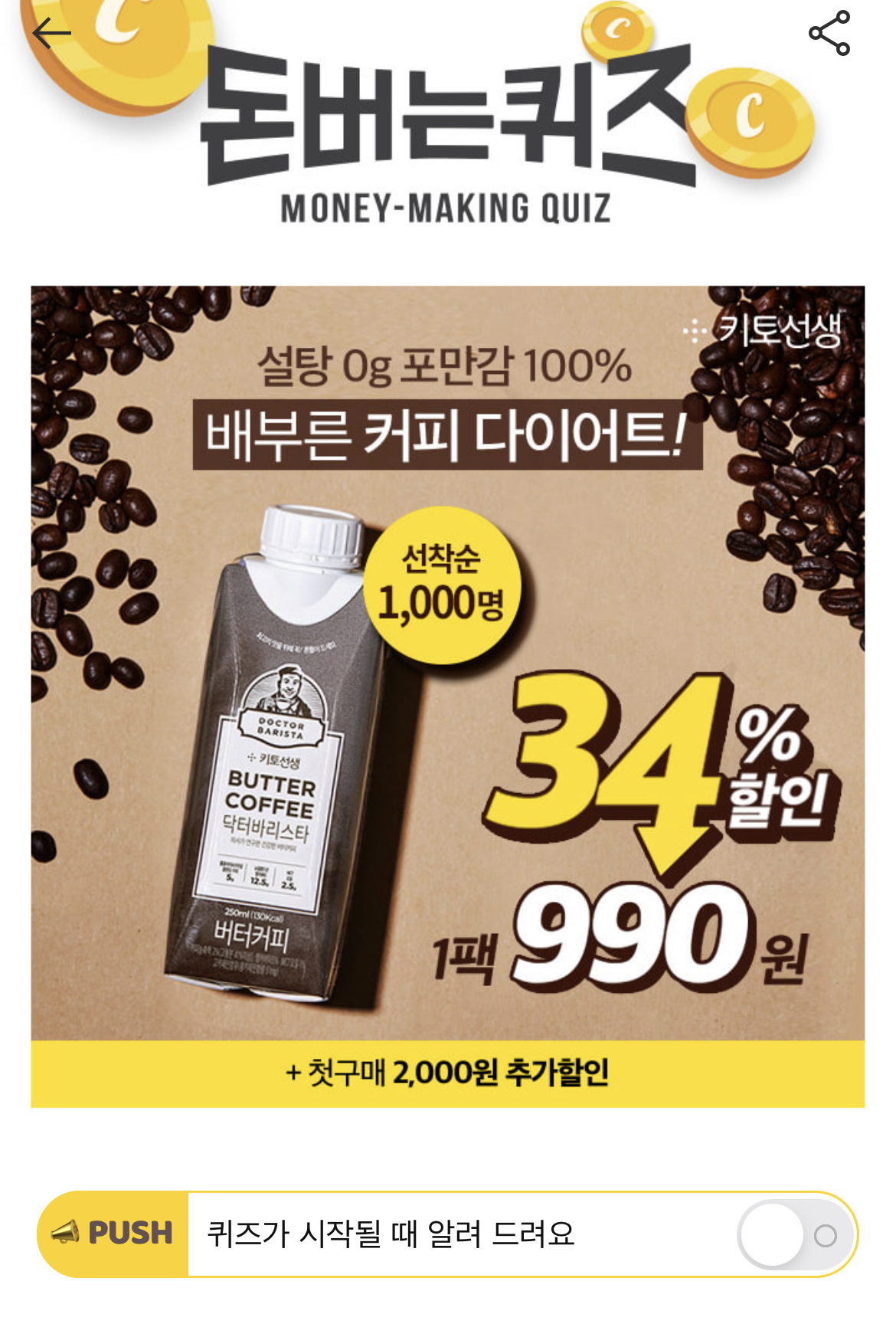 캐시워크 돈버는퀴즈 정답 키토선생 닥터바리스타 버터커피 ㅌㅌㄹㅍ